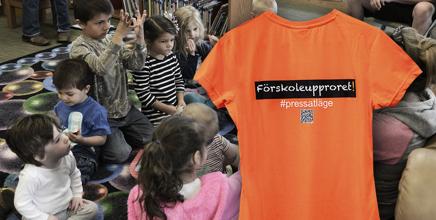 Lena Tomt och hennes kollegor bär förskoleupprorets t-shirt på jobbet. I veckan ska förvaltningen, politikerna och facket ha ett möte där t-shirten kommer att diskuteras. Under tiden har personalen blivit avrådd från att bära den på arbetstid. Detta på grund av att den ”oroade föräldrarna”.