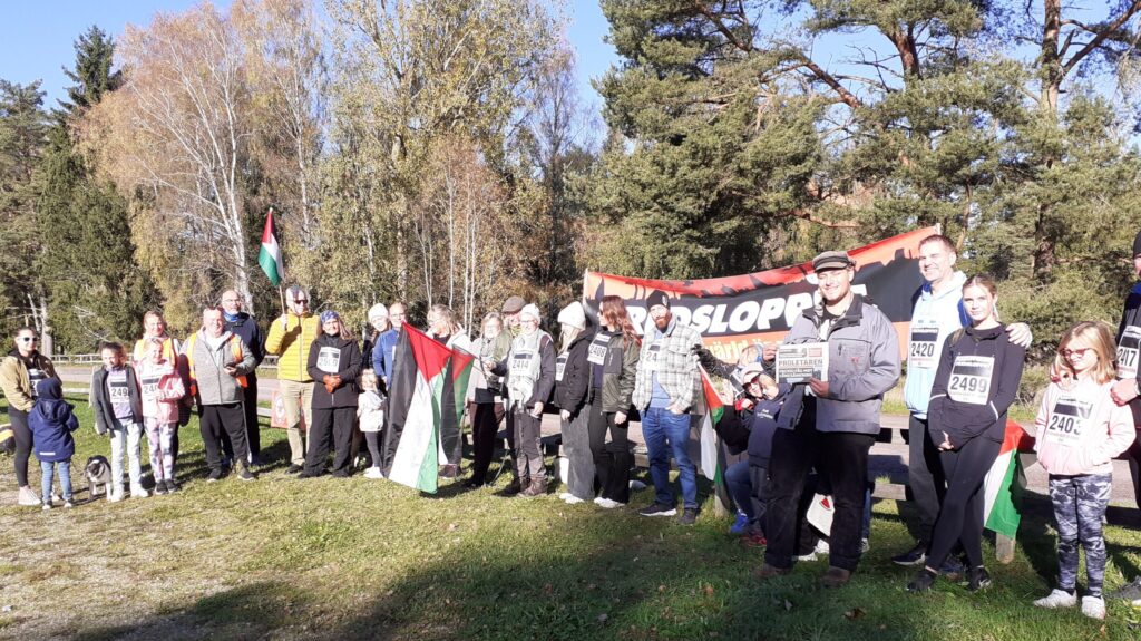 Under en strålande höstdag ordnade Proletären FF och Vänsterpartiet i Sjöbo ett fredslopp till stöd för Palestina och Kuba. Cirka 50 personer deltog och det blev varmkorv och prisutdelning vid målgången.
