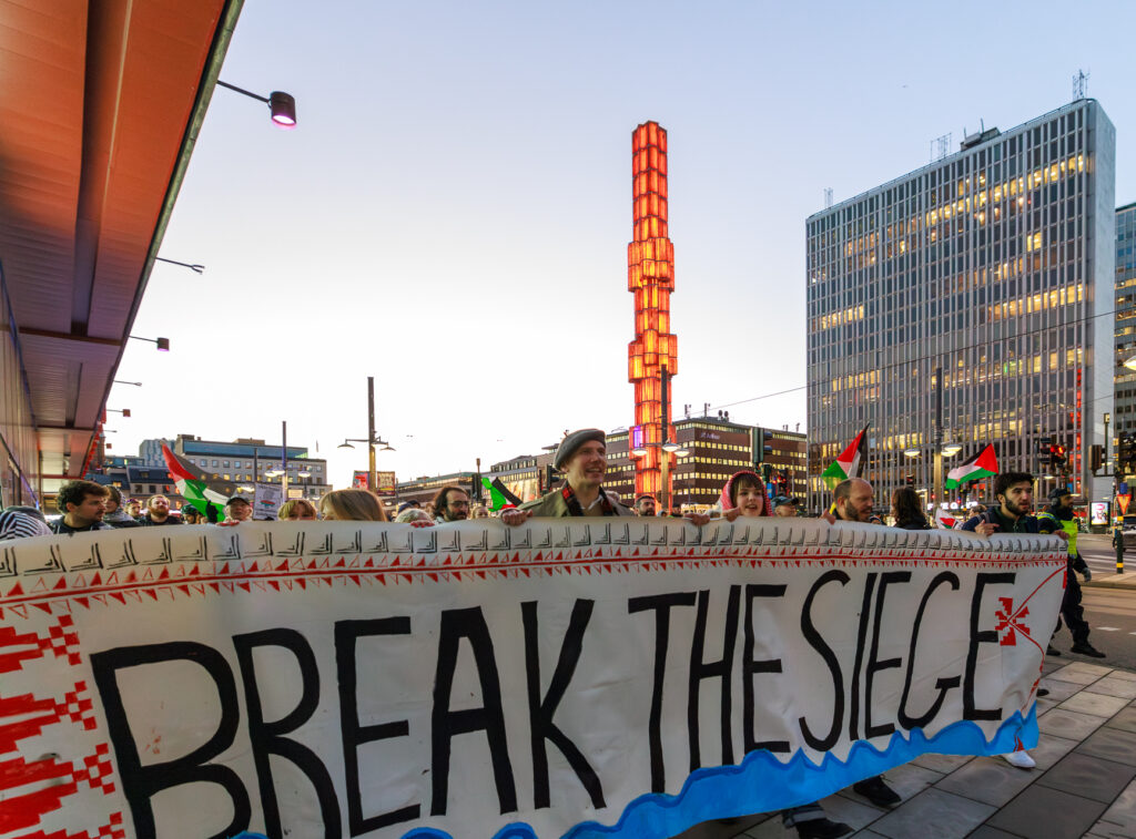 I onsdags kväll gick aktivister ut på Stockholms gator för att kräva att regeringen agerade för Global Sumud Flotilla som omringats av Israel på internationellt vatten. Marschen gick från mynttorget till UD. Ropen ekade över staden: ”All eyes on Global Sumud Flotilla! Break the siege! Bryt blockaden!”