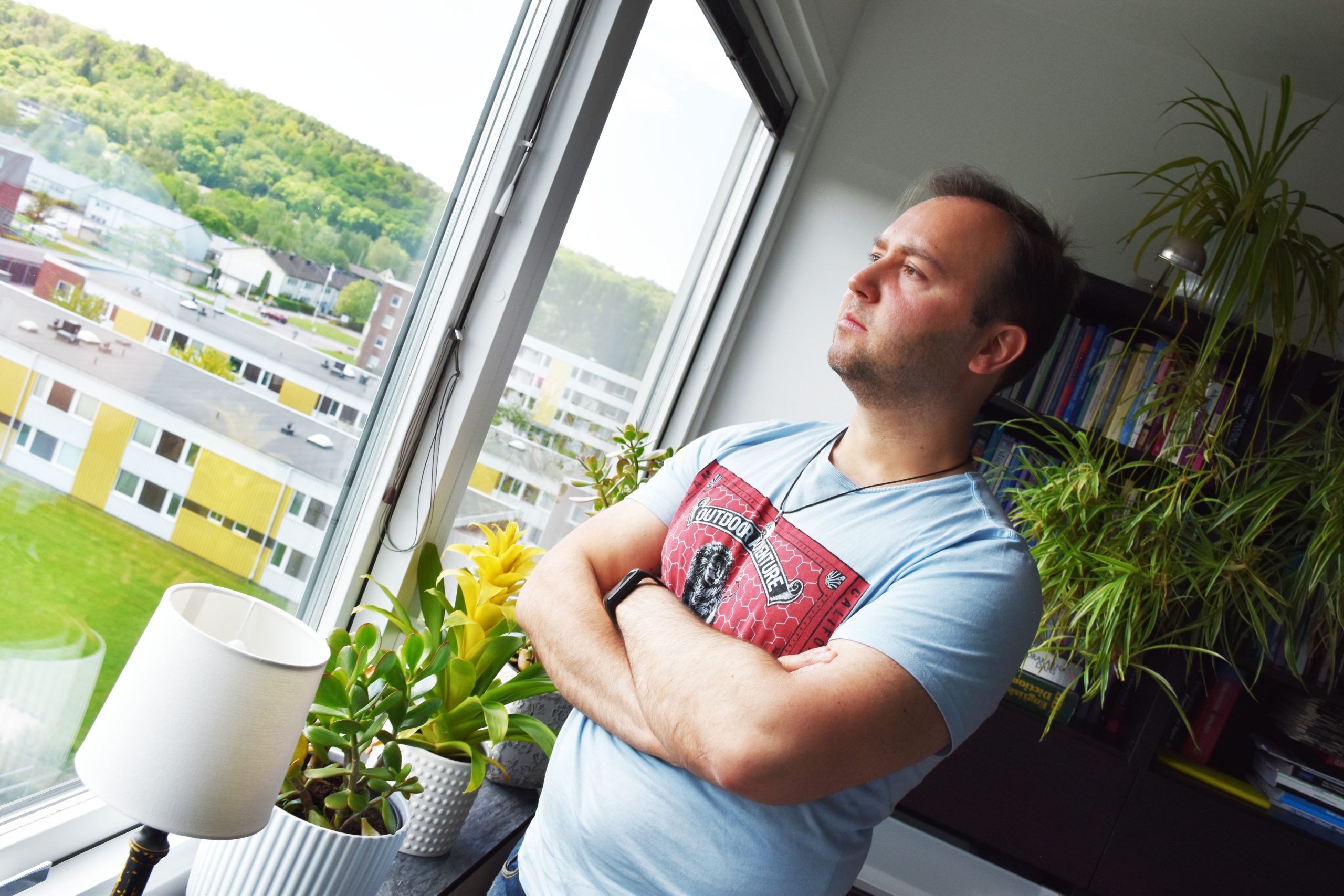 Proletären träffar honom i lägenheten i Kärra, där han bor med fru och barn. Det är fridfullt i närområdet och bra förbindelser till jobbet på Volvo i Torslanda.