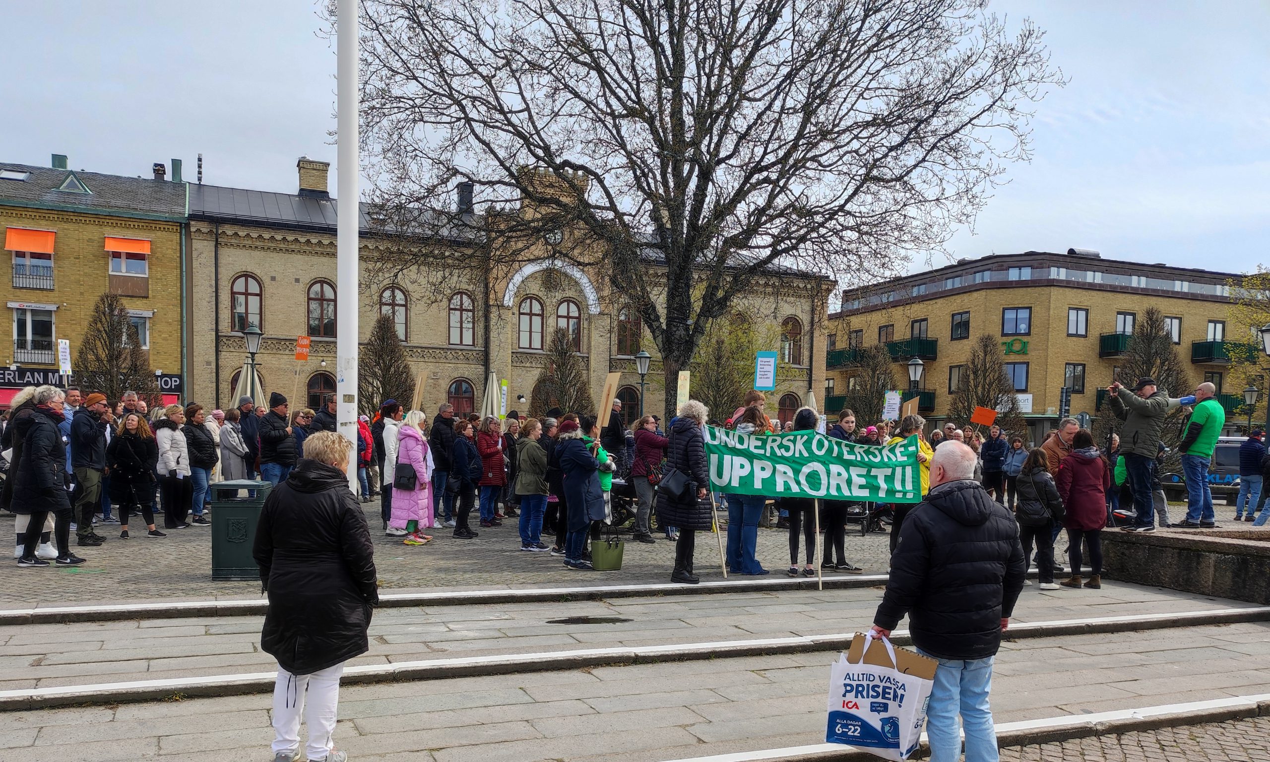 I Varbergs kommun samlades runt 350 personer i Undersköterskeupprorets demonstration mot styrningen inom äldre- och hemtjänstvården i kommunen.