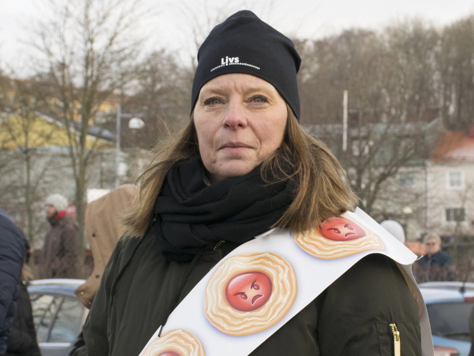 Hon försäkrar att hon, och många med henne, kommer sluta köpa kex från Göteborgs Kex om de tar ett definitivt beslut att flytta. Hon får genast medhåll av kungälvsbon Gittan Nilsdotter, som står i den långa kön till Bräckboden.