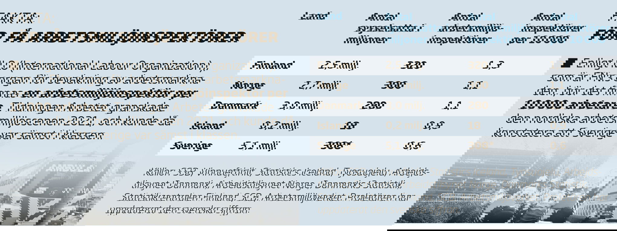 – Förjävligt. Vi är 308 inspektörer i hela Sverige och det finns ju en och annan arbetsplats att ha koll på och inspektera, säger arbetsmiljöinspektören Johan Larsson. Det är rätt svårt nu.
