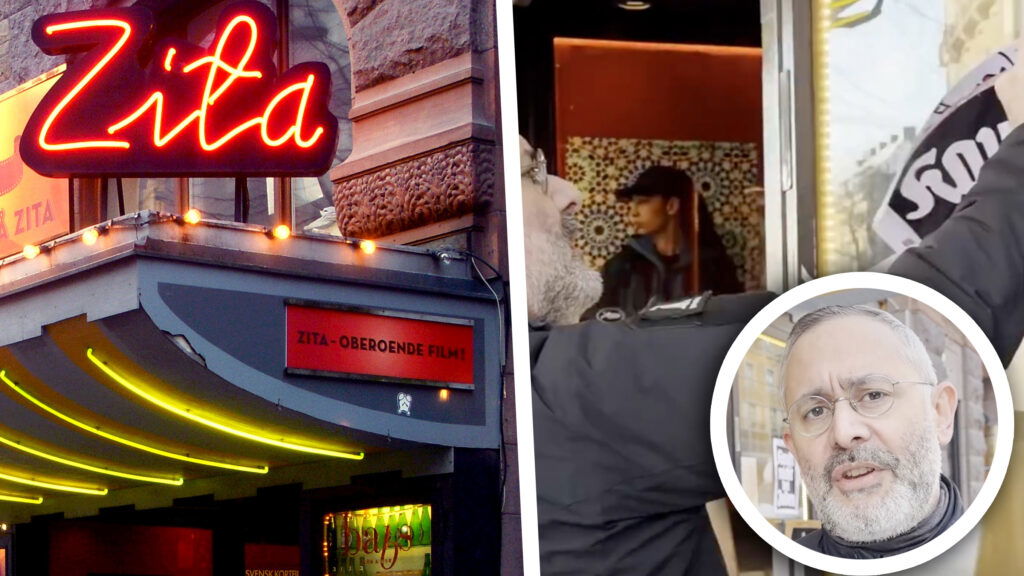 Aron Flam klistrar upp nazistpropaganda på biograf Zita: ”Palestinarörelsen och vänstern är våldsamma”