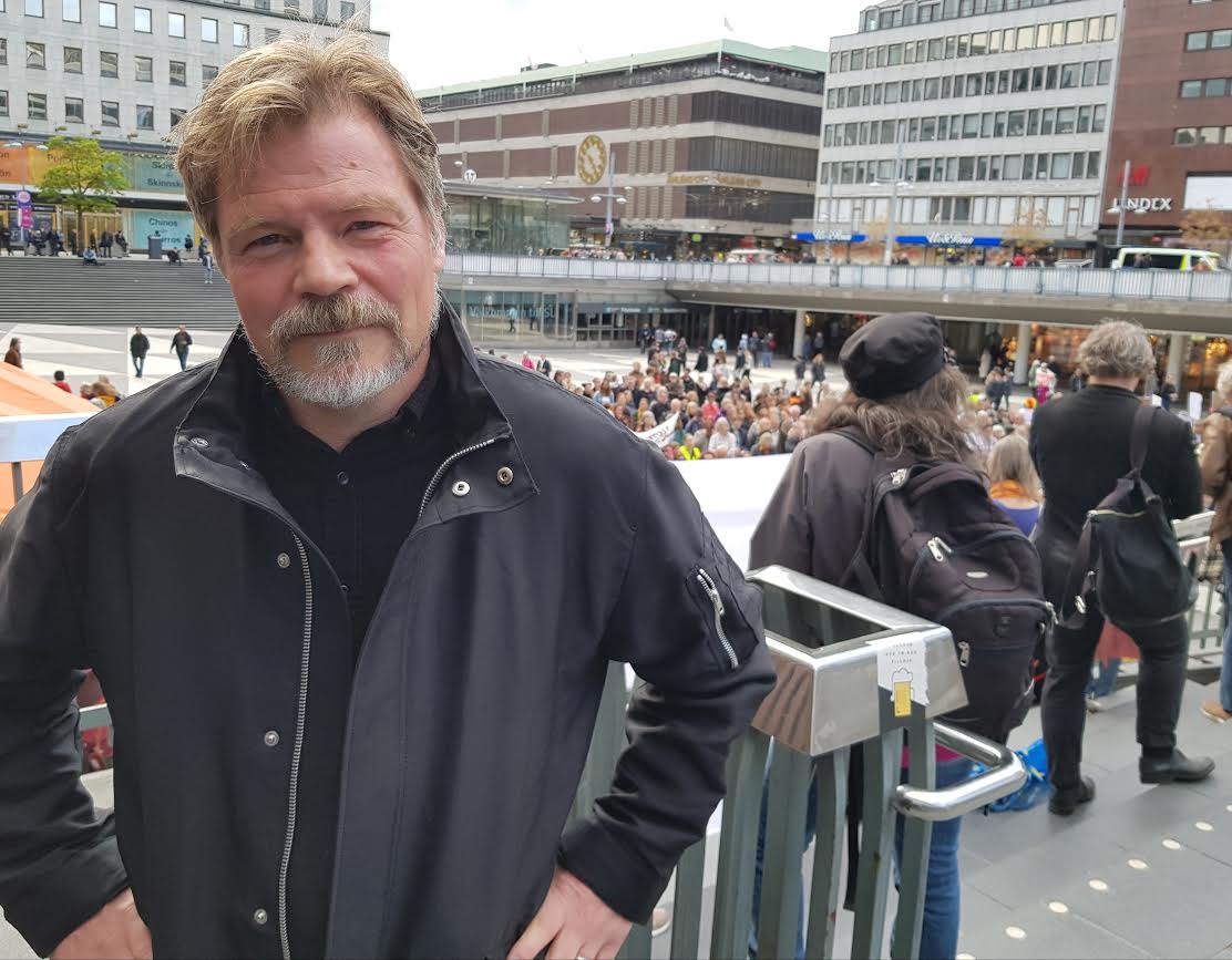 – Att bevara biblioteken är en ekonomisk rättvisefråga, så är det. Det vi gör nu är bara början, säger Kristoffer Leandoer som också talade på det protestmöte som samlade runt 1000 personer på Sergels torg i söndags.