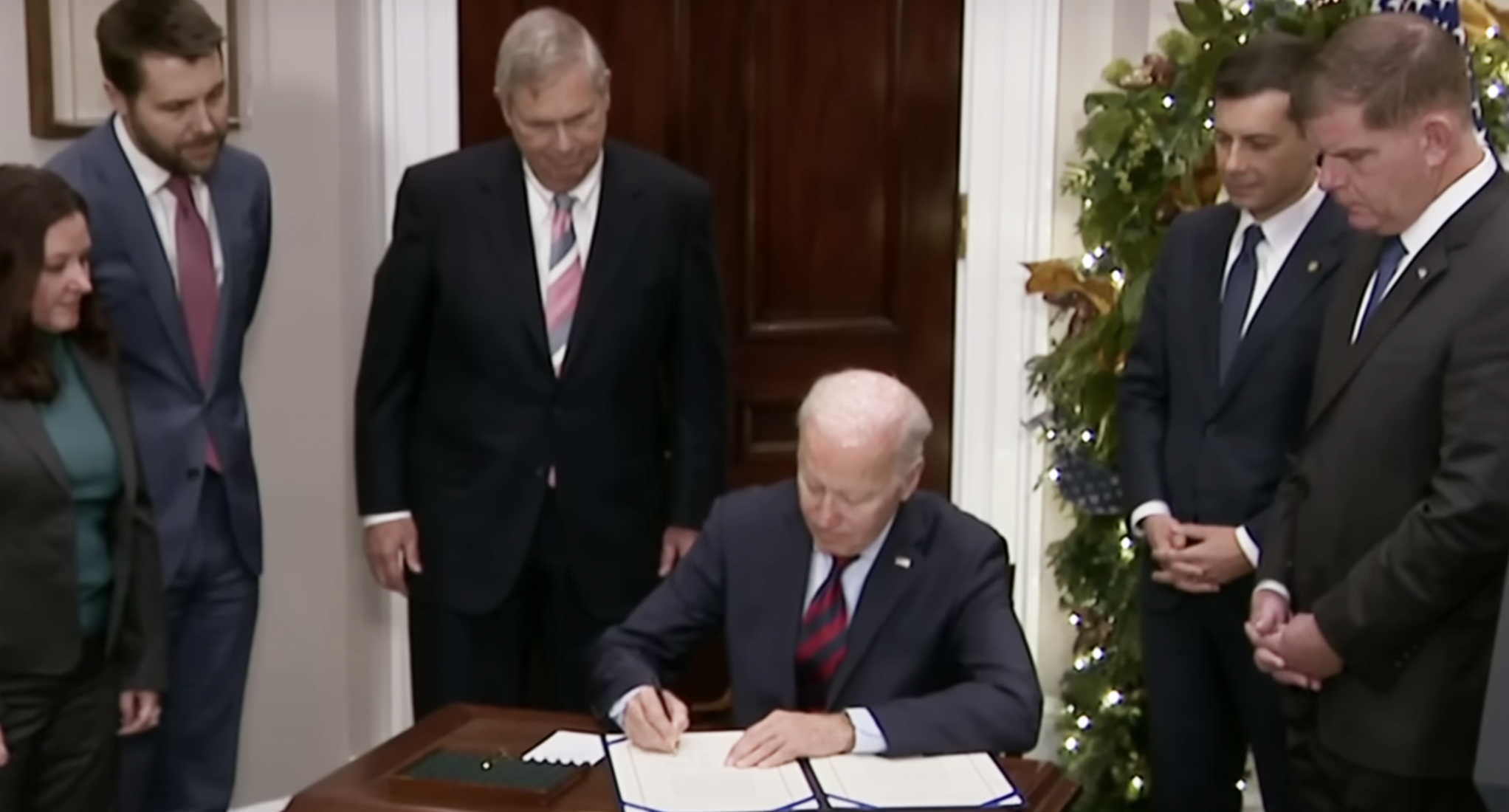 ”Jag uppmanar kongressen att omedelbart anta lagstiftning för att anta det preliminära avtalet mellan järnvägsarbetare och operatörer – utan några ändringar eller förseningar – för att förhindra en potentiellt förödande nationell järnvägsstrejk”, löd ett pressmeddelande signerat Joe Biden den 28 november.
