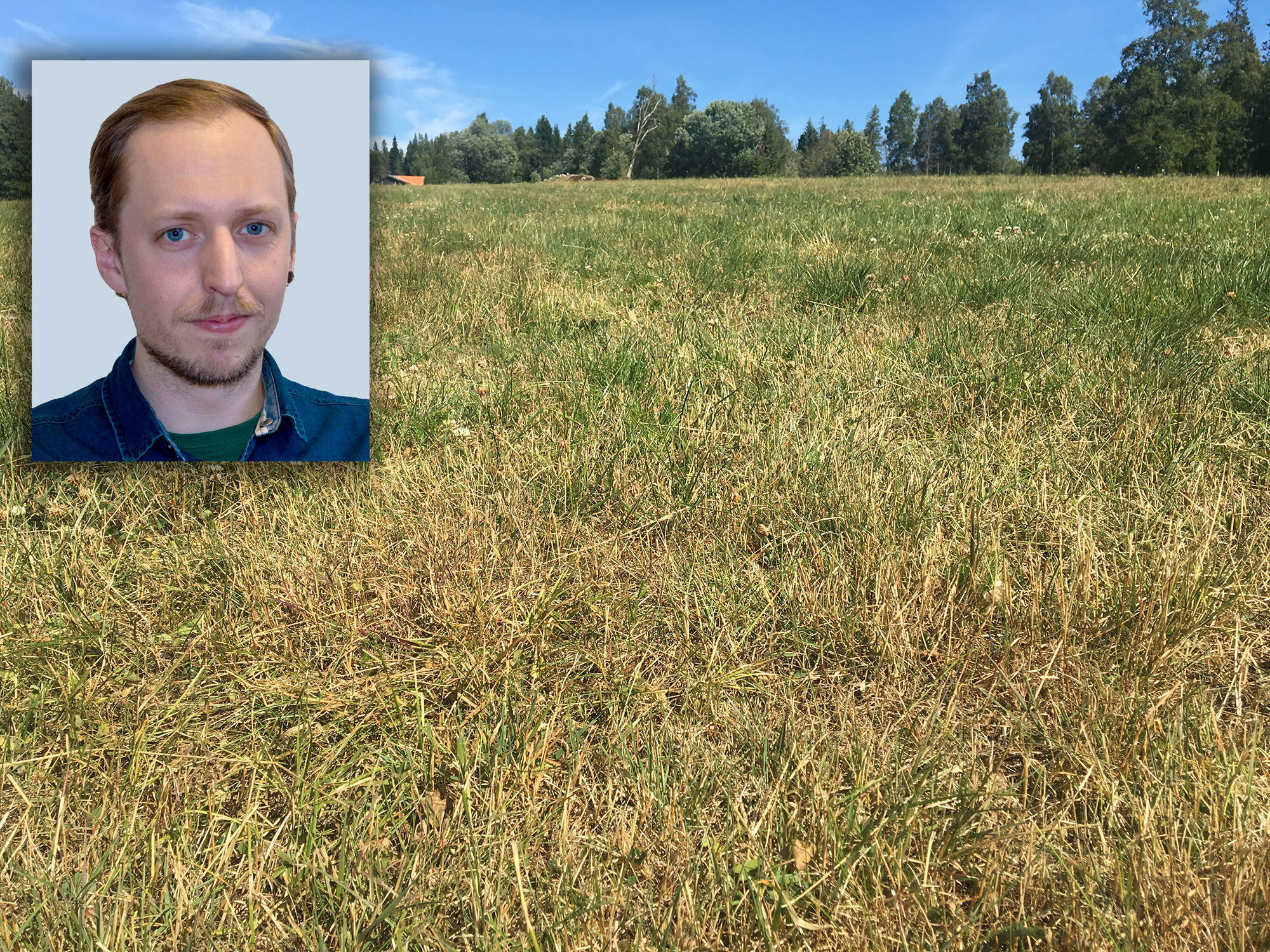 På gården i norra Örebro län har Joel Holmdahl får, kor och grönsaksproduktion i mindre skala, verksamheter som alla påverkas av torkan.