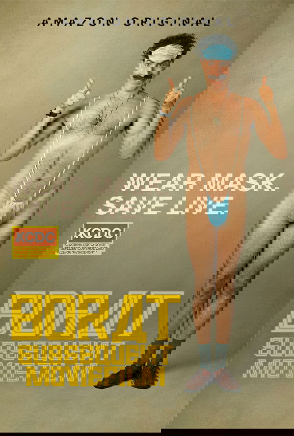 Borat 2 (egentligen Borat subsequent moviefilm: Delivery of prodigious bribe to american regime for make benefit once glorious nation of Kazakhstan) bjuder på samma koncept – Sasha Baron Cohen spelar den kazakstanske reportern som åker runt i USA och exponerar fördomar, absurditeter och hyckleri. För fjorton år sedan var det i Bushs konservativa USA, nu i Trumps.