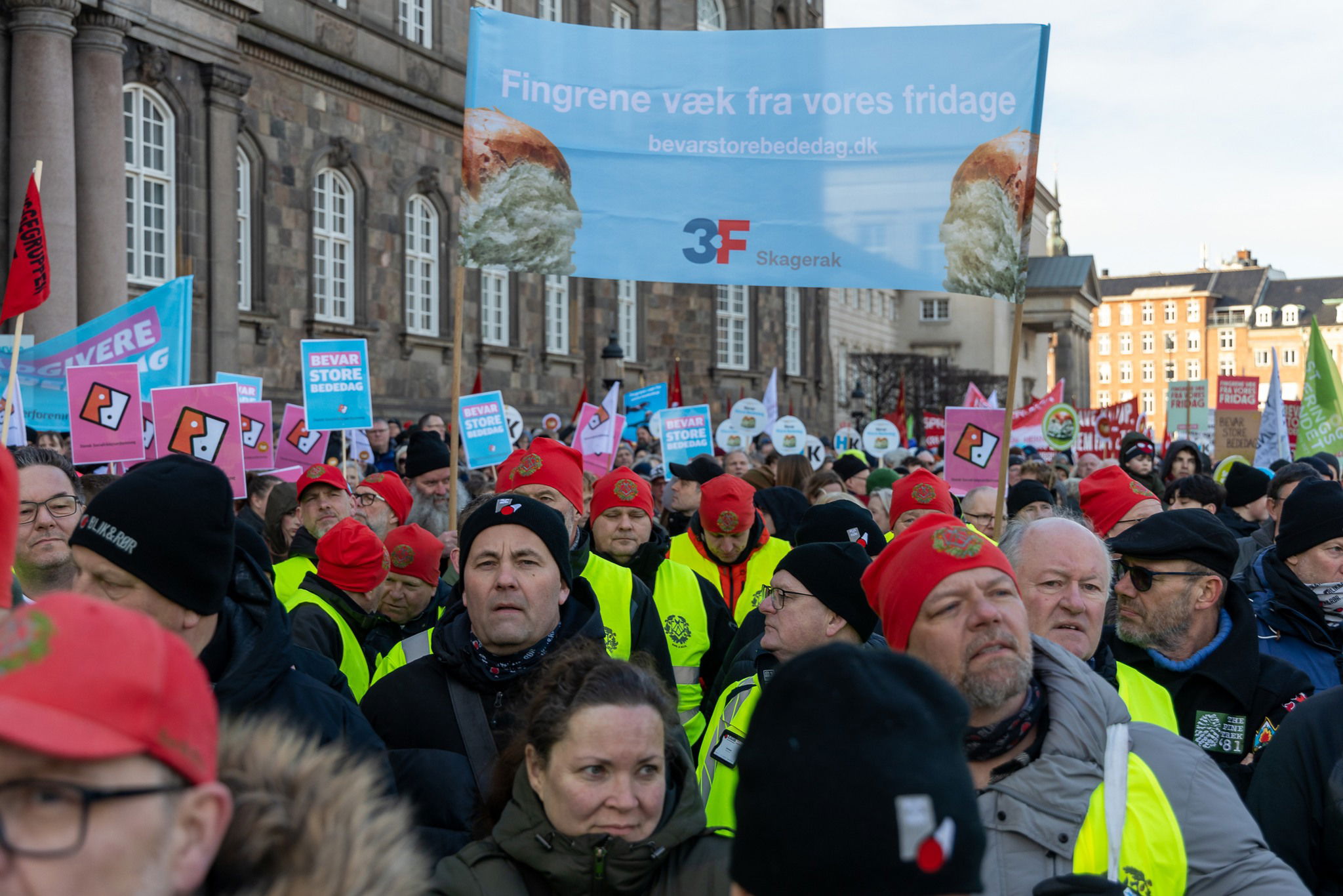 Förslaget möttes redan från start av stora protester. Inte minst från fackföreningsrörelsen som bland annat arrangerade en av Danmarks största demonstrationer någonsin utanför folketinget den 5 februari, där över 50.000 deltog.
