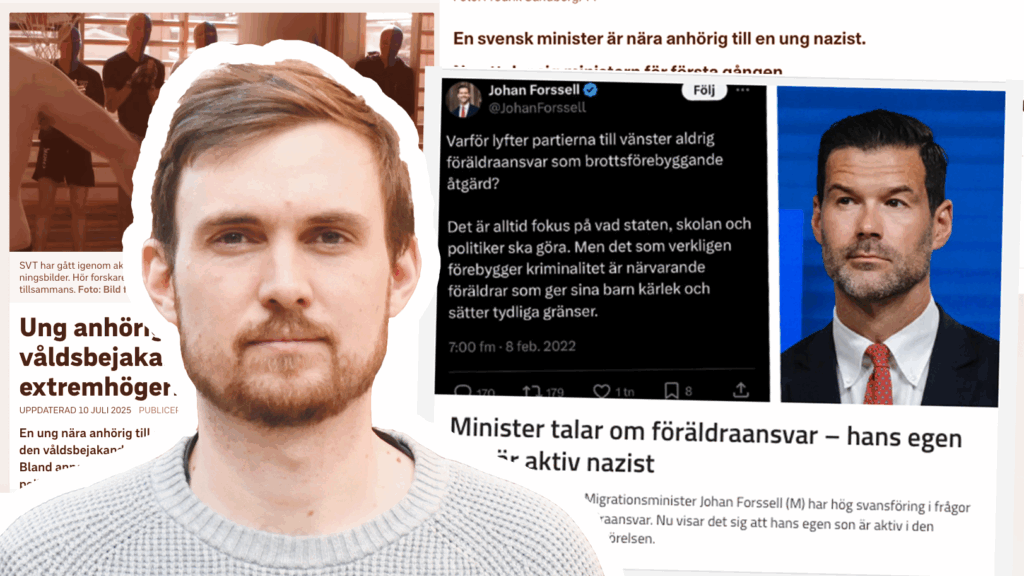 Det var nämligen inte vilken minister som helst vars son var aktiv nazist, utan Johan Forssell. Migrationsministern. En av de högst ansvariga för att genomföra Tidöregeringens allt mer reaktionära invandrings- och kriminalpolitik, där gränserna stängs för de som flyr från krig och förföljelser och där personer med uppehållstillstånd riskerar utvisning på grund av ”bristande vandel”. Som vill sänka straffbarhetsåldern till 14 år.