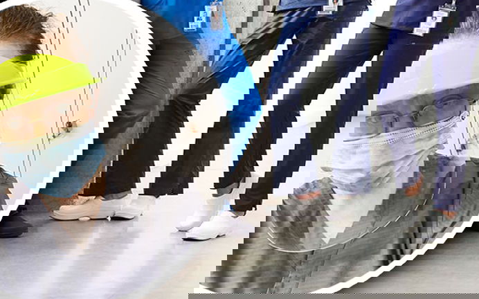 Arbetsskor ska ingå i arbetsklädseln! Skorna slits betydligt mycket mer i arbetet än det övriga arbetskläderna, vårdpersonalen kan gå upp till 15.000 steg på en arbetsdag på betonggolv och asfalt. Nu under rådande pandemi har vi stressat, slitit och sprungit mer än någonsin tidigare. Förslitningsskador, fel belastningar och sjukskrivningar är snart givet. Är det inte logiskt att skor ingår i arbetsklädseln, i yrken där personalen är fysiskt aktiva?