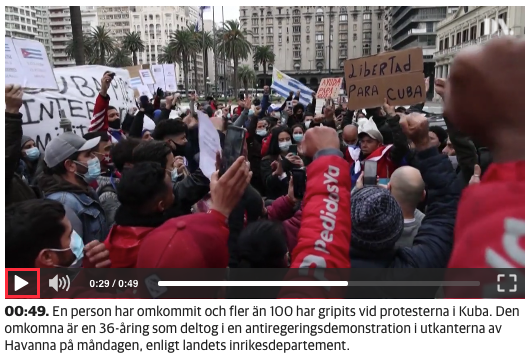 Expressen är inte den enda svenska mediekanalen som sprider desinformation. Dagens Nyheter publicerade under onsdagen en artikel med ett videoinslag om protesterna i Kuba. Men videoklippet visade inte kubaner, utan en skara antikommunistiska demonstranter i ett kylslaget Montevideo i Uruguay.