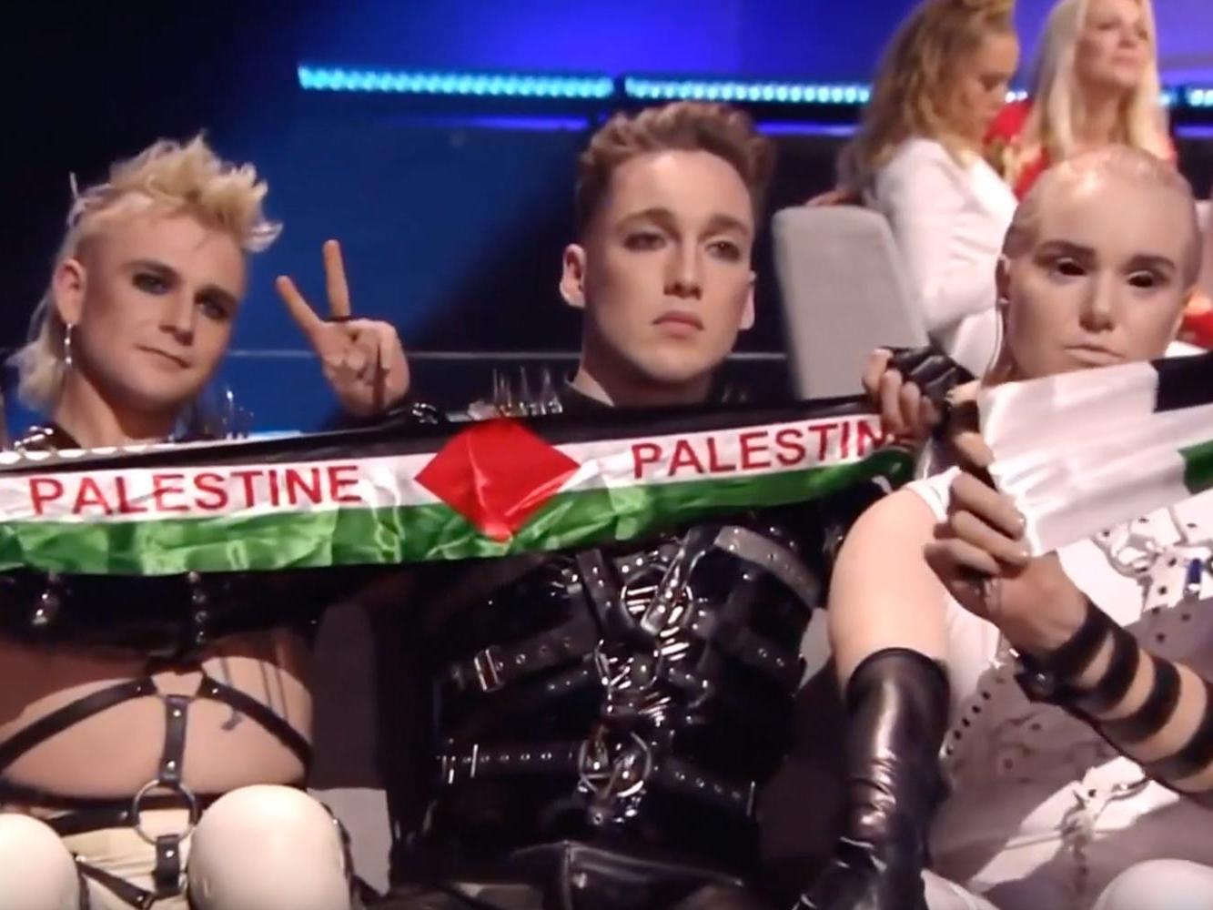 På scen hände inget, men under poängutdelningen höll de upp palestinahalsdukar. Enligt flera källor blev de utbuade av publiken efter sin ”kupp” och på en mobilfilm kan man se hur en vakt kommer fram till dem för att konfiskera halsdukarna.