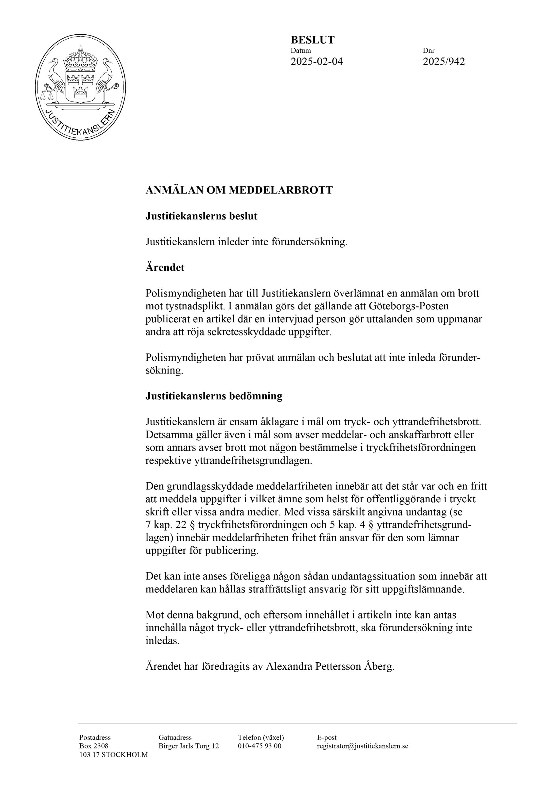 – Om min arbetsgivare i media går ut och säger att jag är uppsagd med tanke på ”rikets säkerhet” får det en jättestor påverkan på hela min närmaste omgivning, det är någonting jag kommer behövs prata med allt från barnens lärare till fotbollsklubben om. Nyheten att det inte ens inleds en förundersökning kommer inte ha samma genomslag. Och jag kan inte undgå att tänka att det är med i beräkningen.
