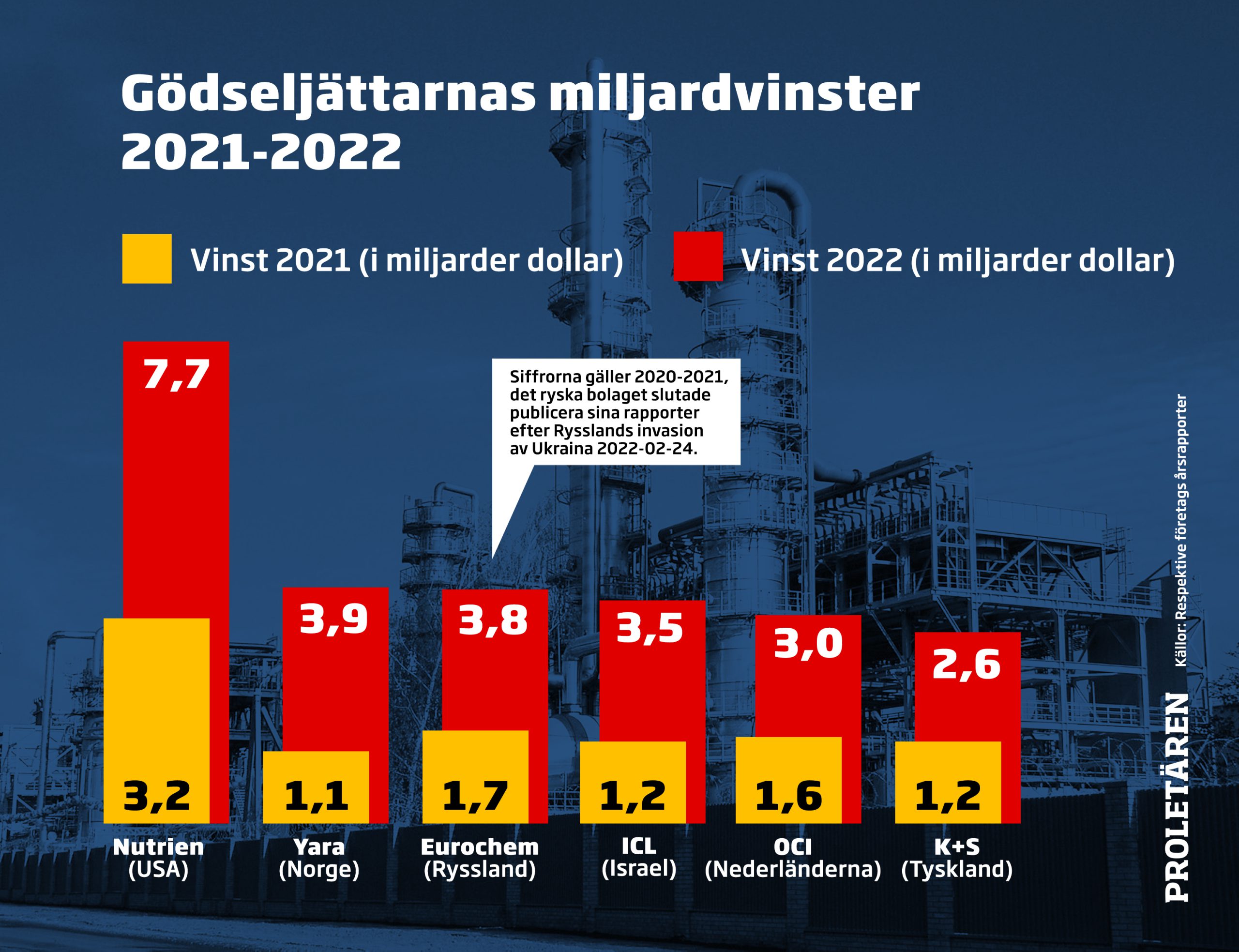 Yara är inte det enda konstgödselbolaget som gjort stora vinster under 2022. Tyska K+S AG gjorde sitt bästa resultat någonsin. Spanska Fertiberria, en storspelare på den iberiska halvön, dubblade sitt rörelseresultat och amerikanska Nutrien, världens största gödselbolag, ökade sin vinst med 142 procent.