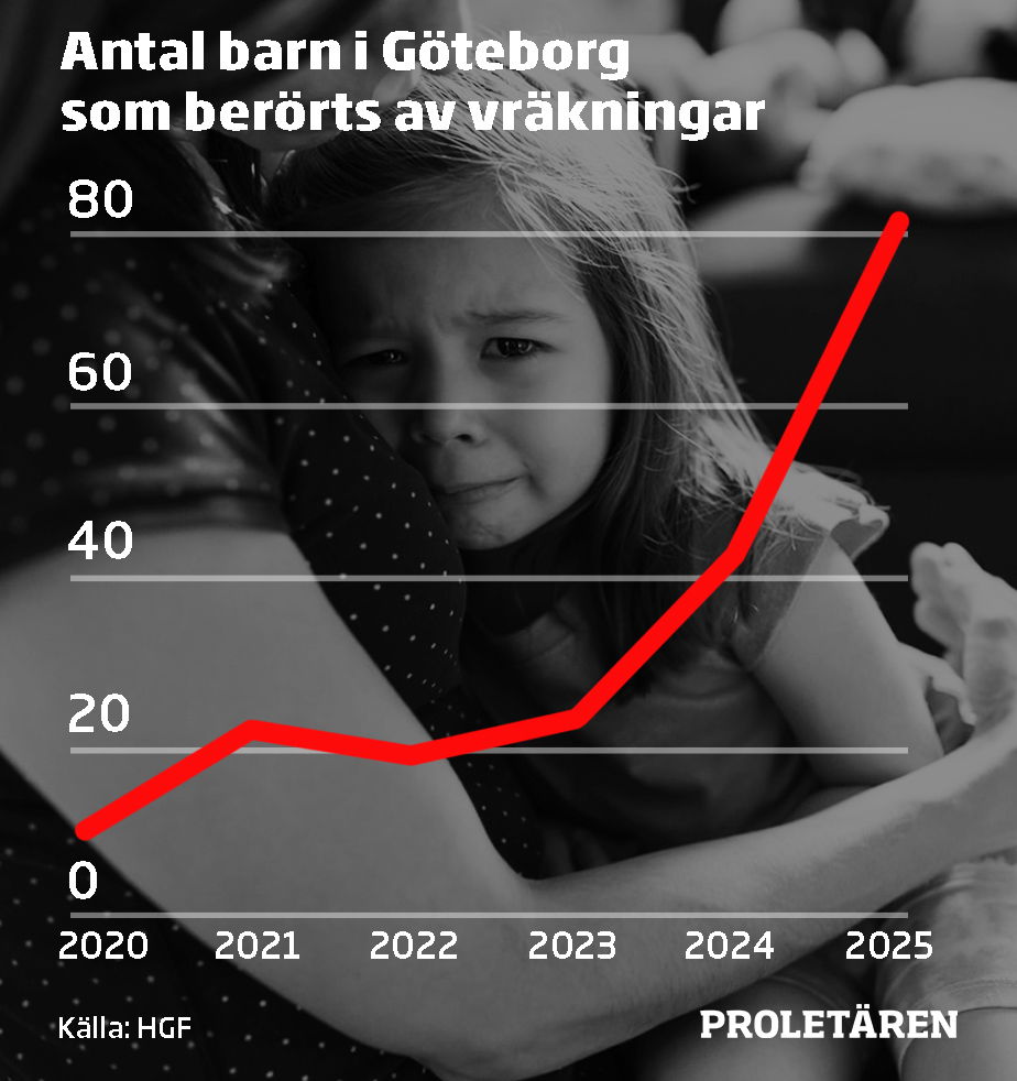 2025 fördubblades nästan antalet barn som påverkades av vräkningar i Göteborgs kommun, från 43 till 82. Siffran är nu högst i landet.