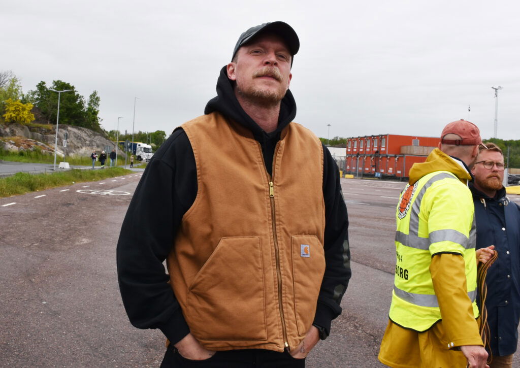 – Kraven kostar inte dem som sköter sig någonting överhuvudtaget. Jag tror att deras upplevelse är att de inte behöver kompromissa. Och då vill de heller inte göra det, säger Hamnarbetarförbundets vice ordförande Erik Helgeson, på väg till strejkvakten vid Göteborgs Hamn.