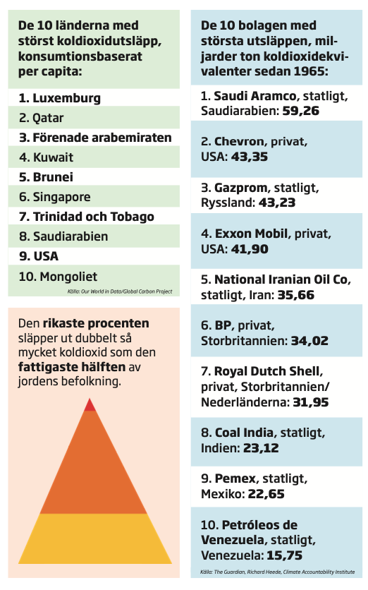 Men är alla luxemburgare, eller för den delen svenskar, då lika farliga klimatbovar? Nja, inom varje land finns stora skillnader i vilka som står för störst andel utsläpp.