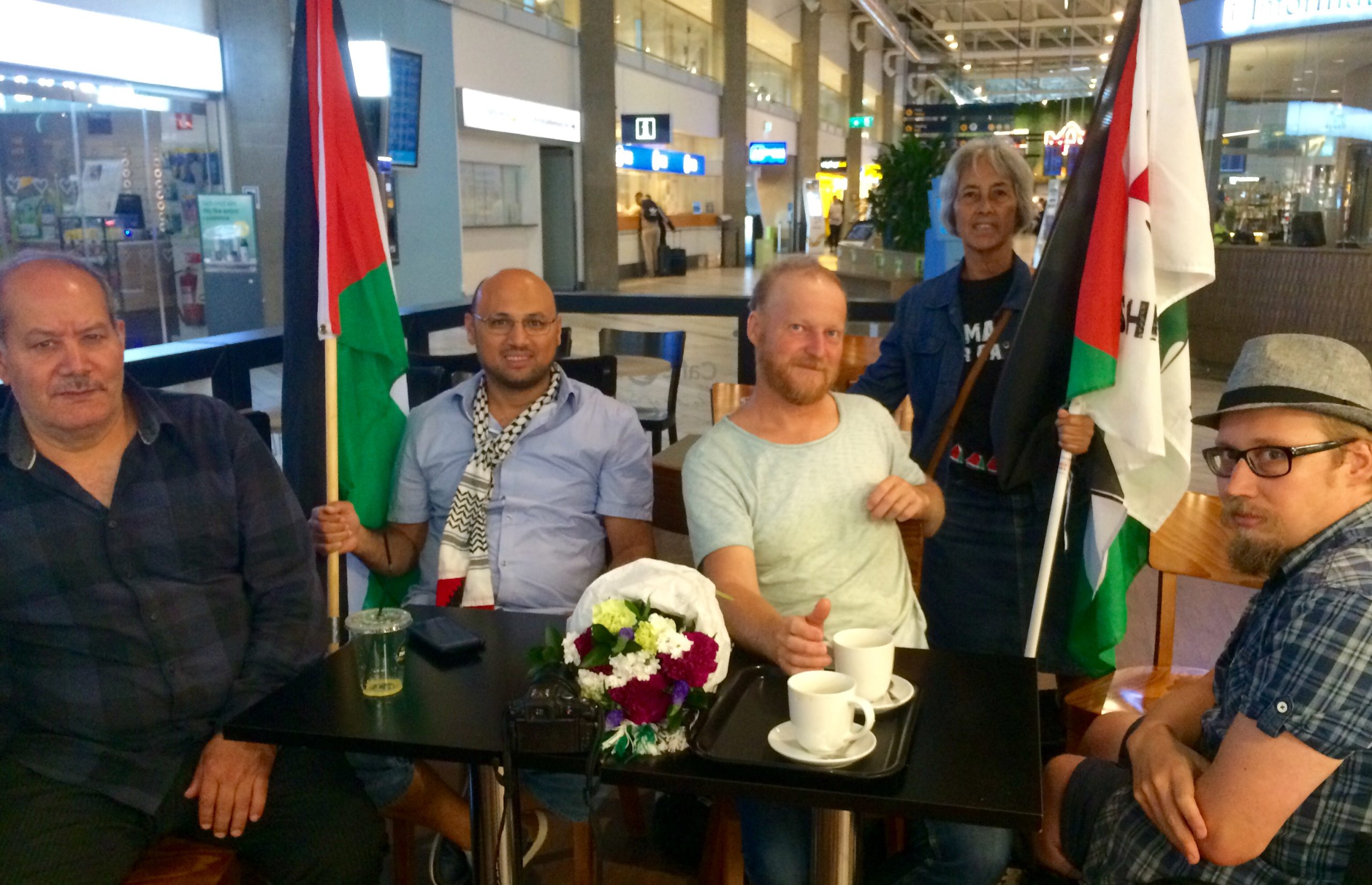 Charlie Andreasson landade på Landvetter på torsdagskvällen och välkomnades med palestinska flaggor. Han är hemma igen efter att ha blivit kidnappad av israelisk militär.