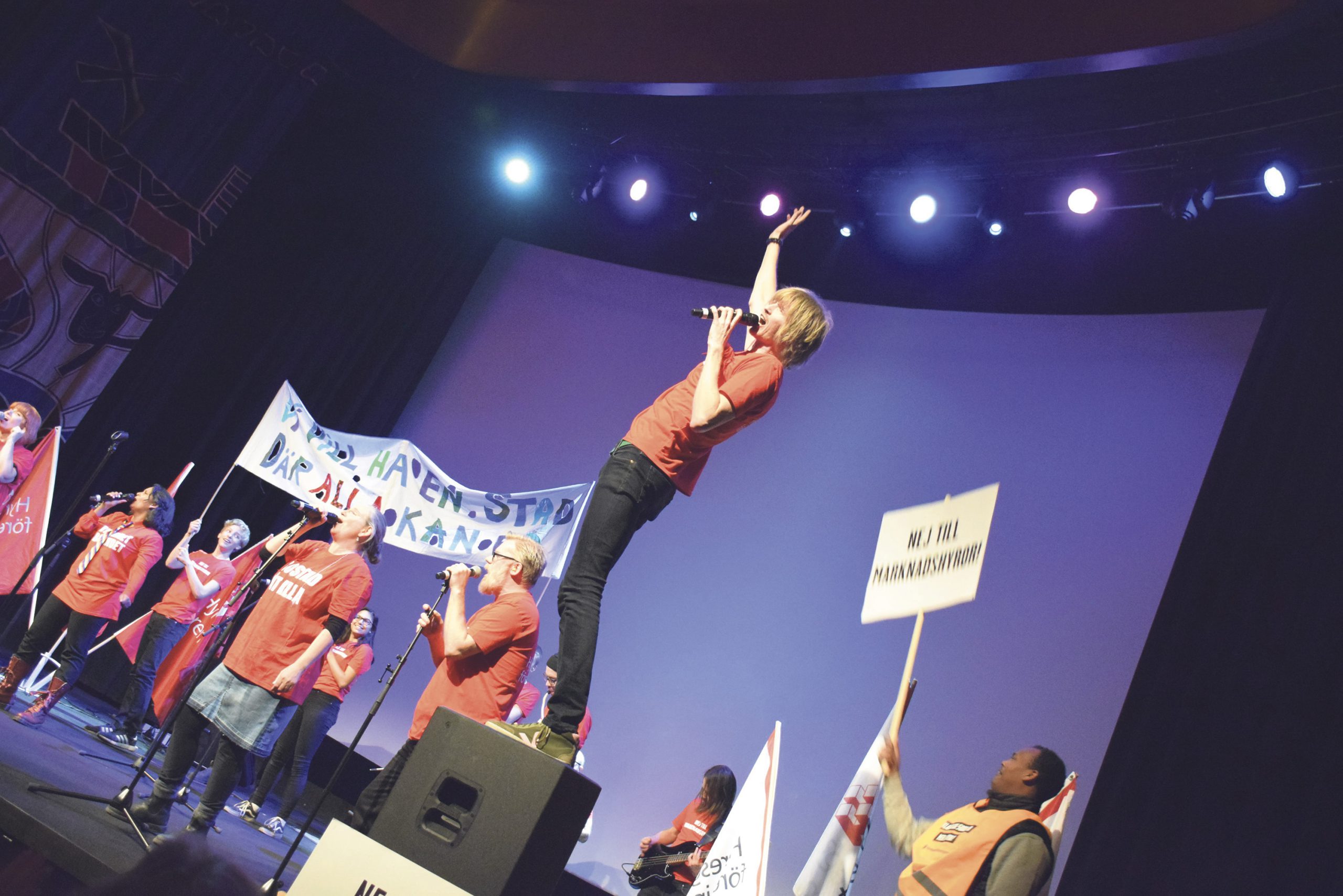 Talen varvades med uppträdanden från bland annat Sara Garib, Ortens poet 2018 och popbandet Förbannade hyresgäster, samt visning av Astrid Askbergers värmande bostadspolitiska kortfilm ”Väggen”.