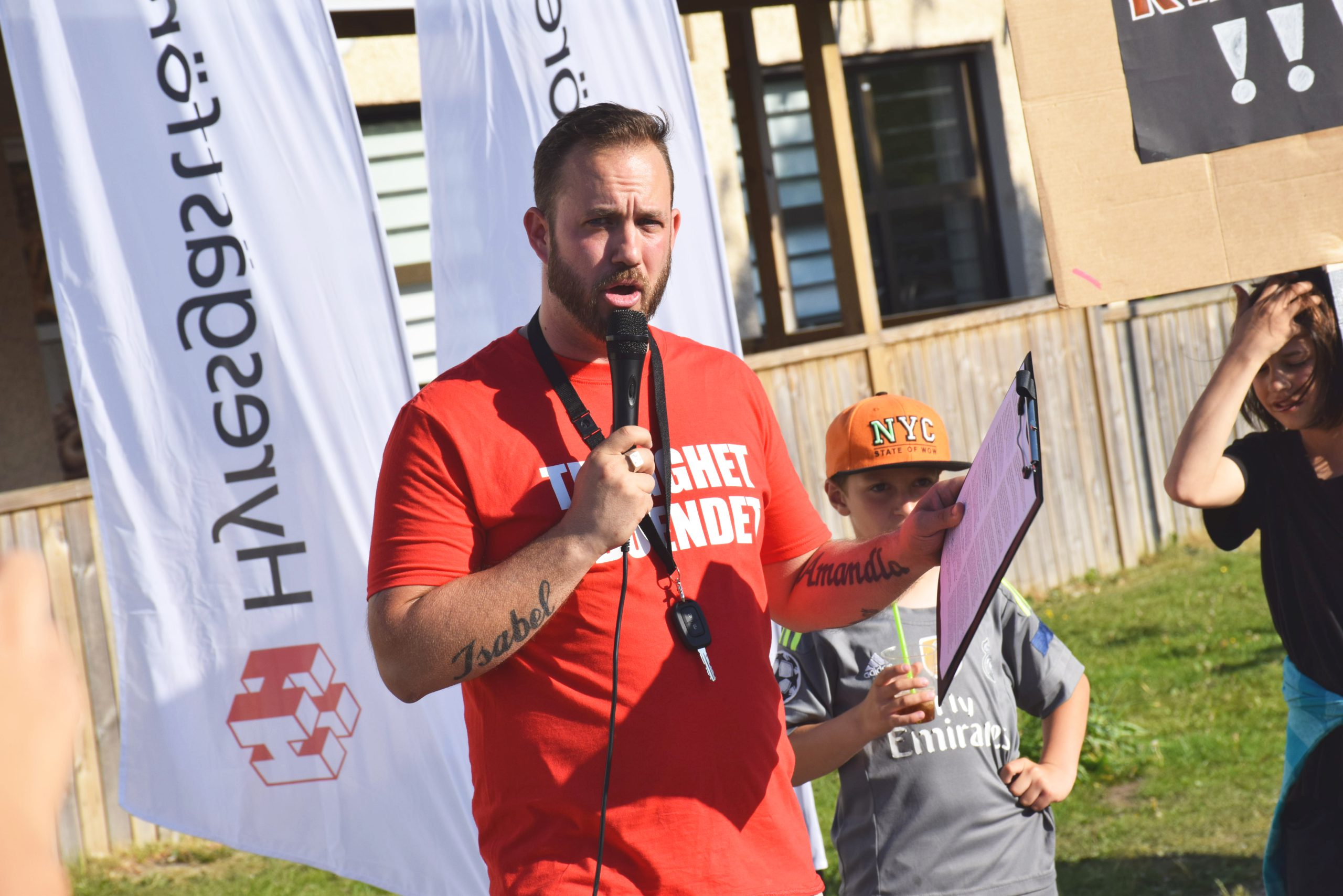 Kristofer Lundberg under en manifestation för återkommunalisering av lägenhetsbeståndet i Lövgärdet, Göteborg 2018. Foto: Artur Szandrowski