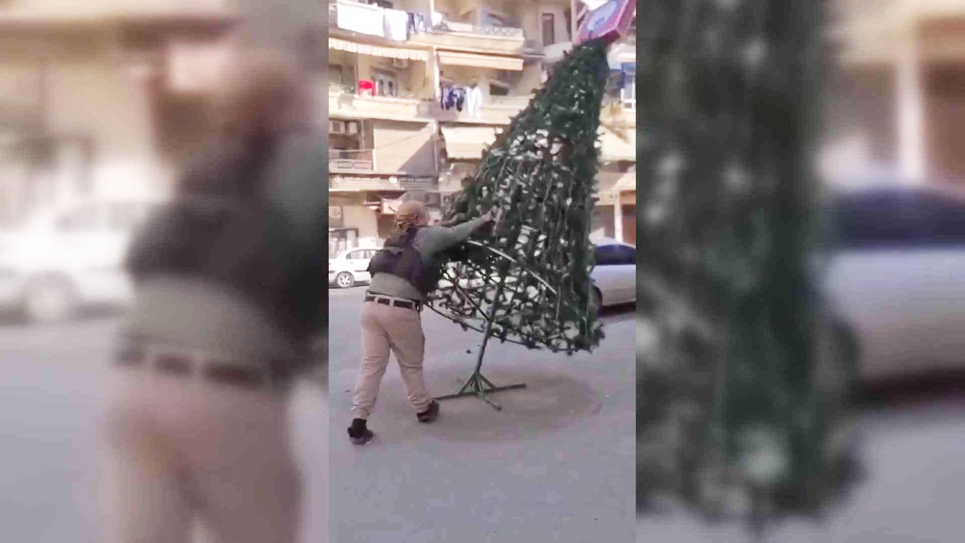 I ett på X brett spritt filmklipp ser vi när en av de till Aleppo nyanlända jihadistkrigarna symboliskt river ner en julgran. Det säger ganska mycket om framtiden.