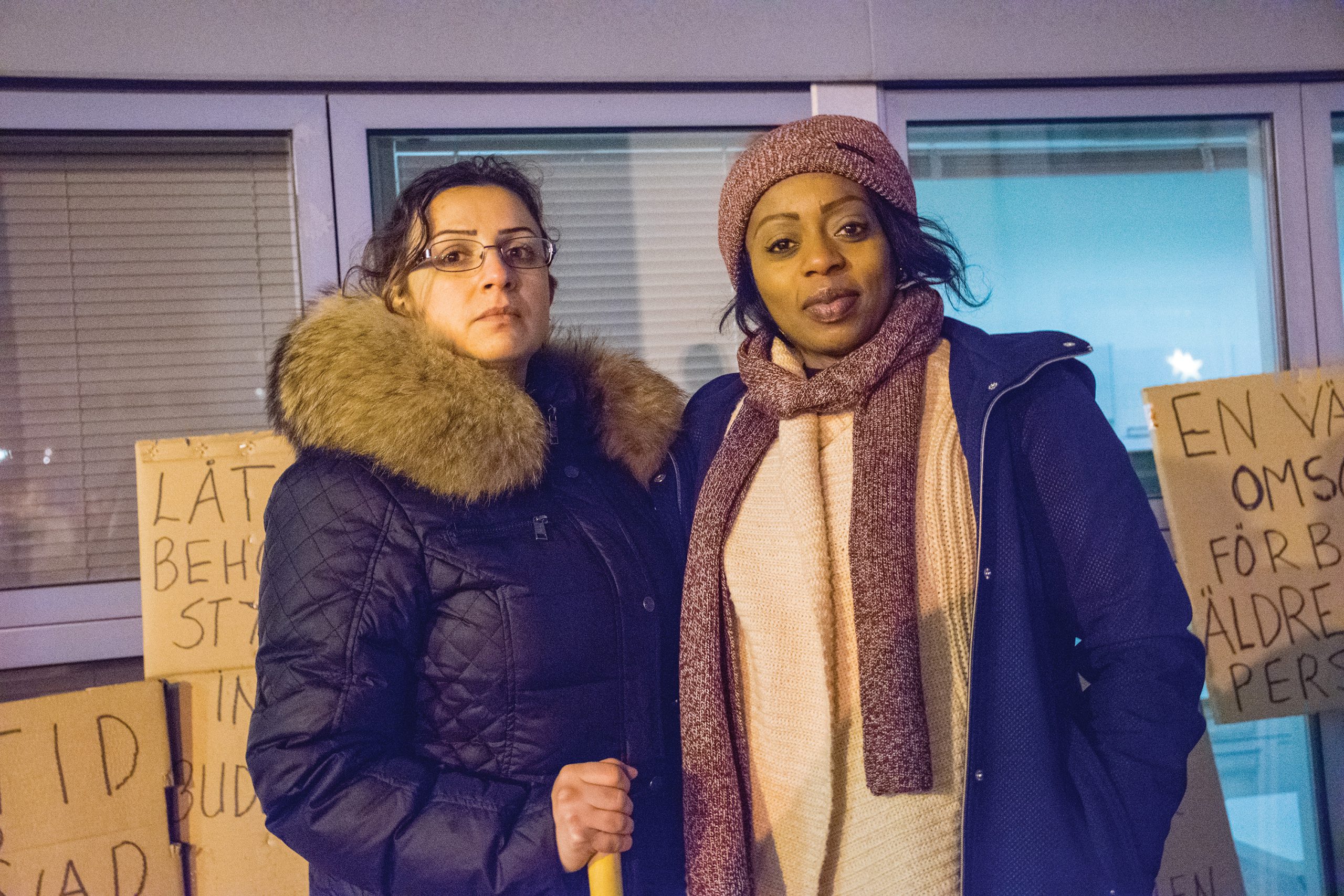 Väl framme utanför vård- och äldrenämndens möteslokaler tar nämndens ordförande Ida Legnemark (V) emot de nu över 700 underskrifterna och försäkrar att politikerna ska arbeta med frågan. Andra vice ordförande Bengt Bohlin (S) håller med om att de tar frågorna på allvar och att de ”jobbar med detta”.