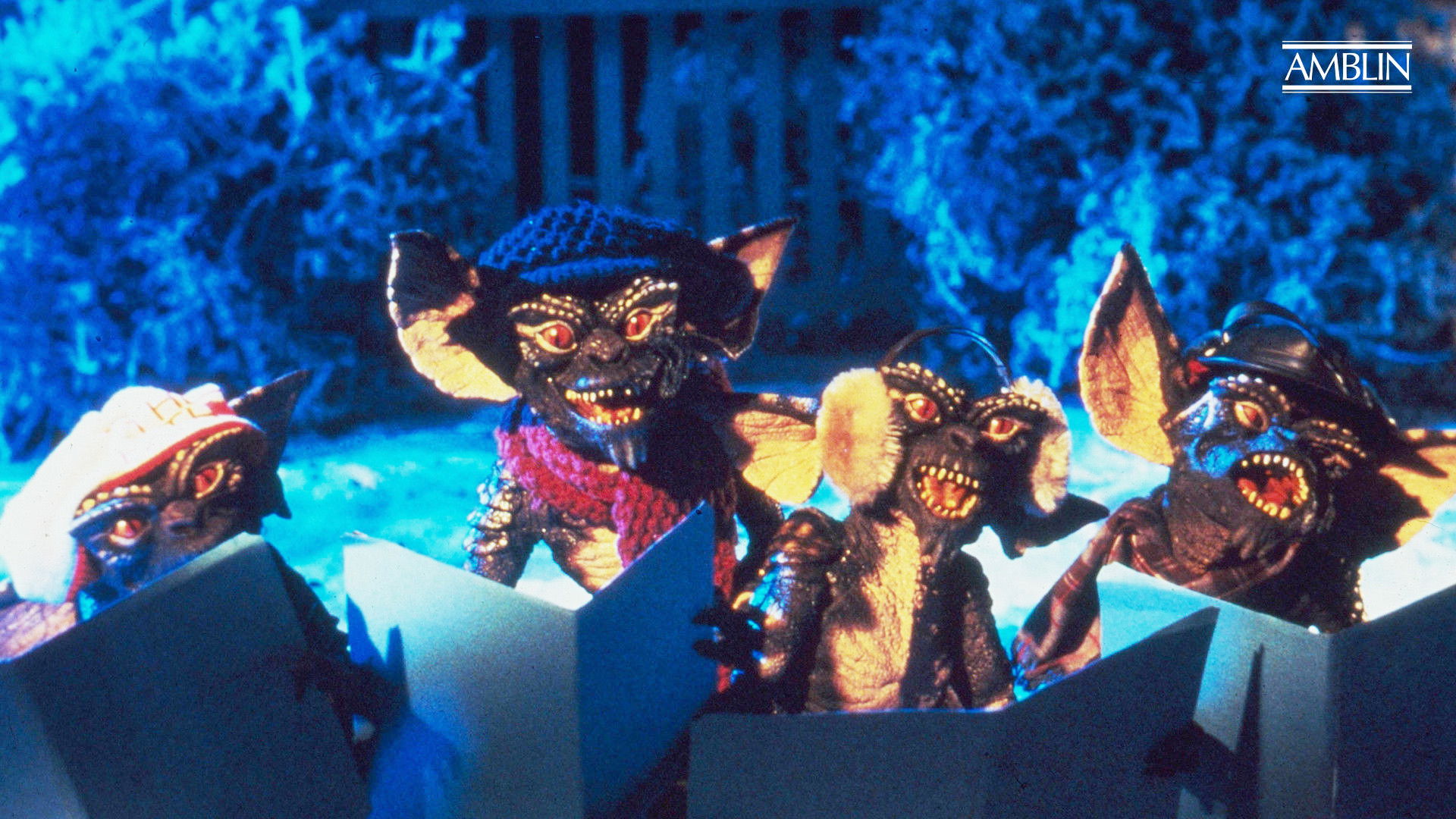 Gremlinsarna sjunger julsånger. Foto: Amblin