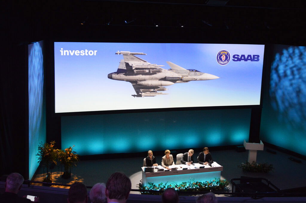 Investor är Wallenbergklanens investmentbolag. Bolaget producerar inget själva, men har sina fingrar i de flesta svenska industrisyltburkar. Inte minst vapenjätten Saab, som det gått väldigt, väldigt bra för tack vare upprustningshysterin (i årsrapporten kan man läsa om en ”rekordstor orderstock”).