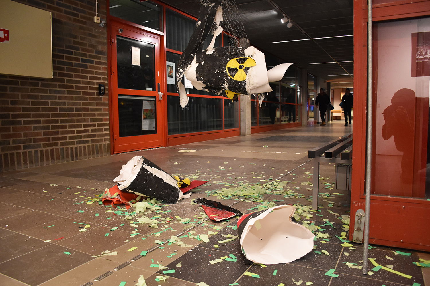 Torsdagen den 8 december öppnade utställningen på Frölunda kulturhus. Ett femtiotal besökare bjöds på affischer och salta pinnar. De fick också tillfälle att gå loss på en piñata i form av en kärnvapenstridsspets, fylld med grön konfetti och ”radioaktivt” godis.