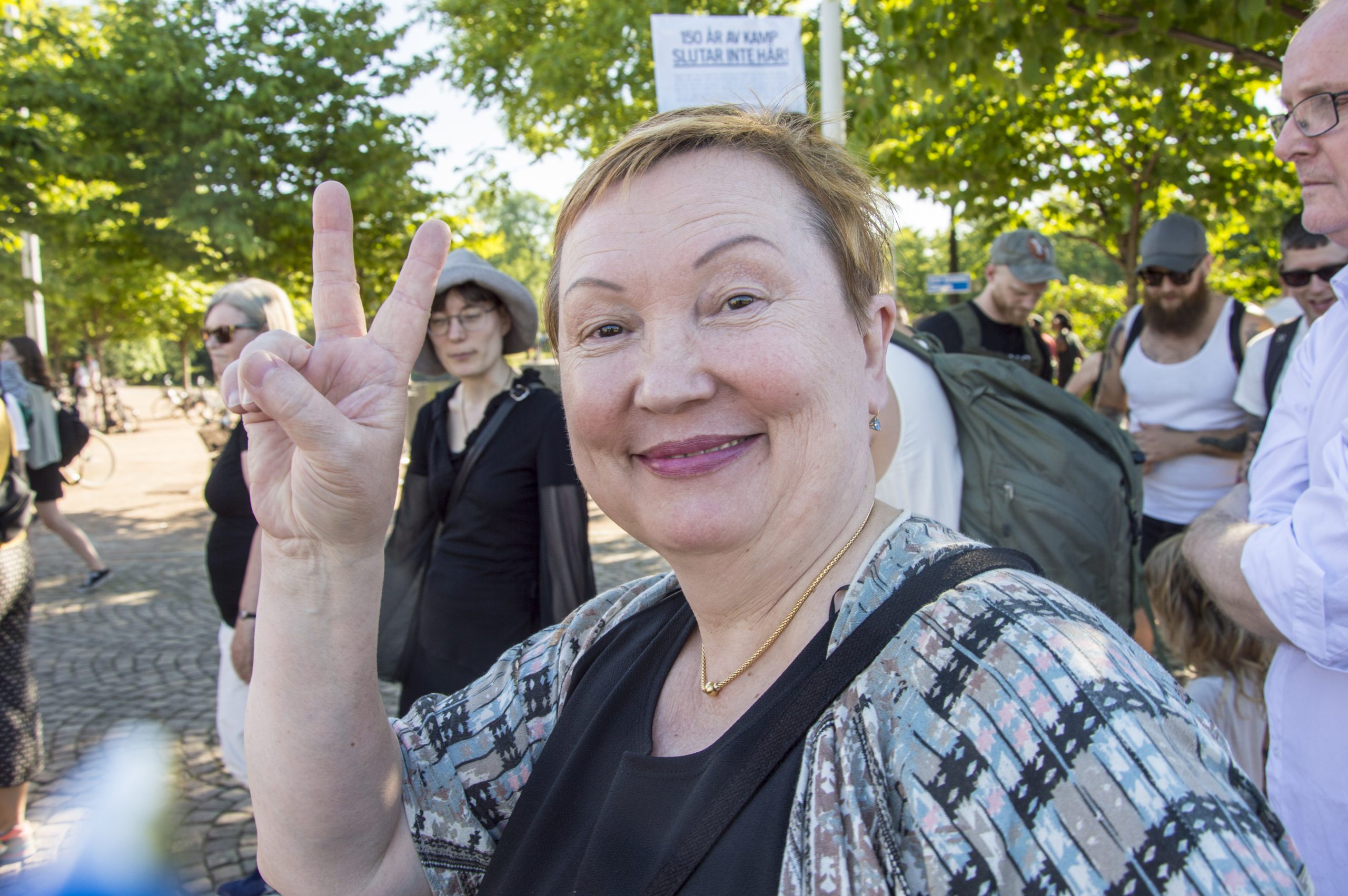 Undersköterskan Roza Nordh som jobbar inom äldreomsorgen var en av 300 personer som demonstrerade för strejkrätten i Göteborg i går. Hon demonstrerar för att försvara de rättigheter som arbetare vunnit genom åren.