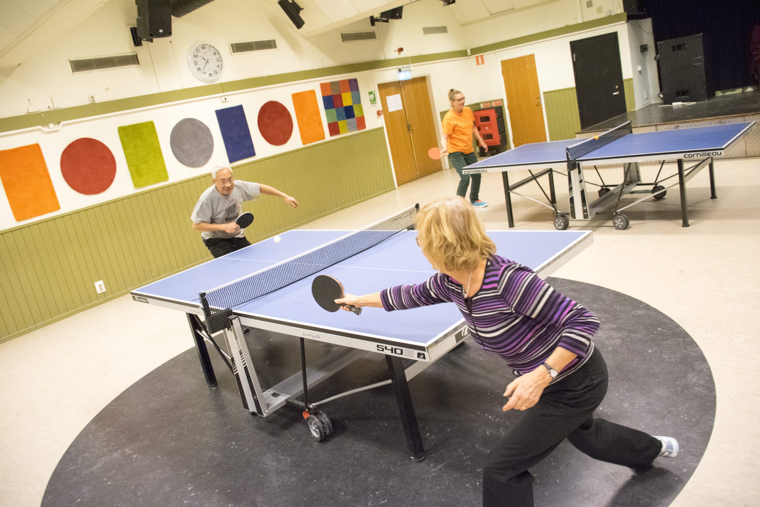 Varje onsdag kommer pensionärer till Livslust för att spela pingis.