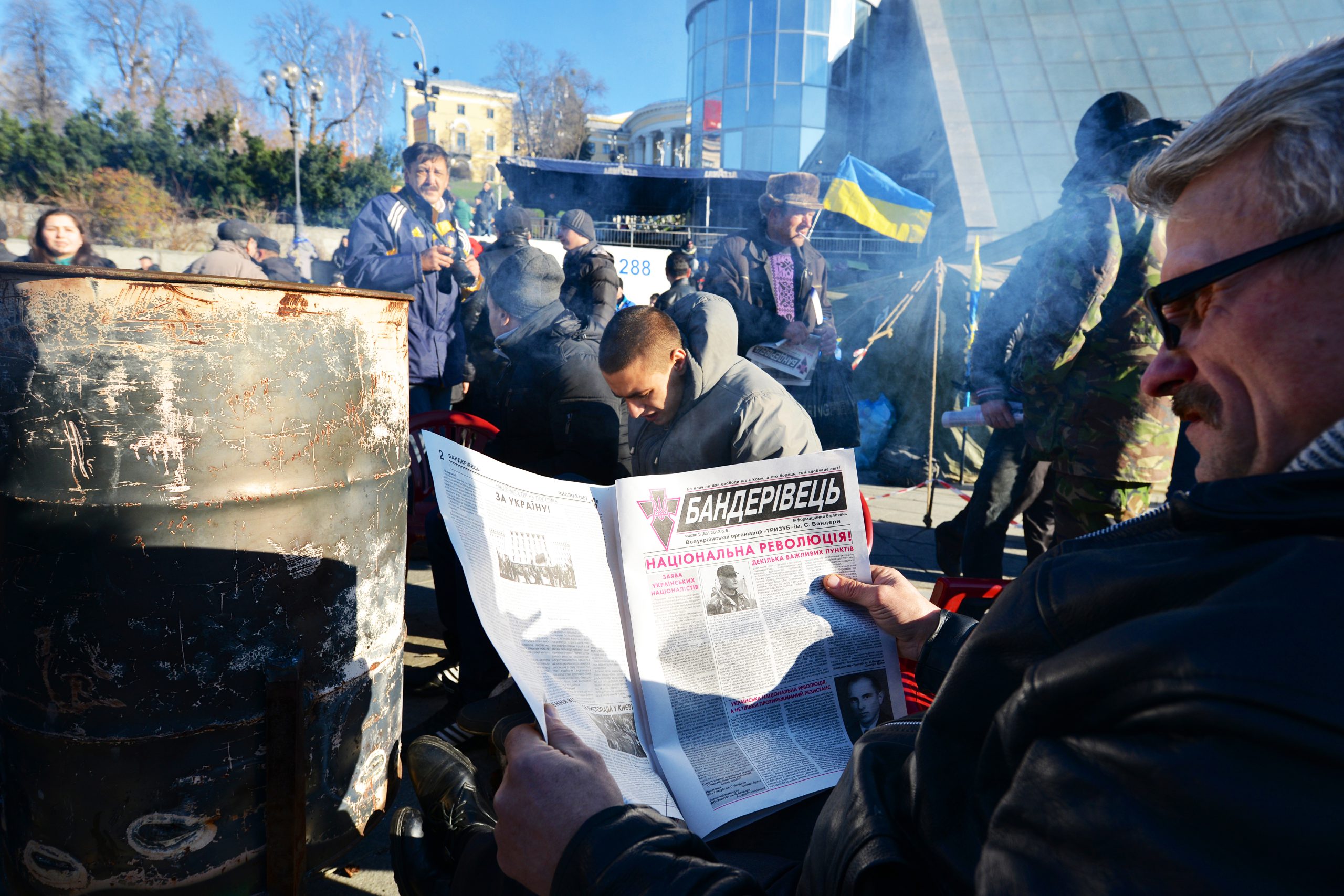 Euromajdanprotesterna inleddes 21 november 2013 och de nådde sitt crescendo 20 februari 2014, då kalabalik och skottlossning utbröt på torget. Närmare hundra människor dödades, däribland ett antal poliser. I västerländsk press utpekades Ukrainas säkerhetsstyrkor (Berkut) genast som ensamt ansvarig för detta blodbad och helt nyligen (efter nästan tio år) har tre representanter för Berkut också dömts för brott.