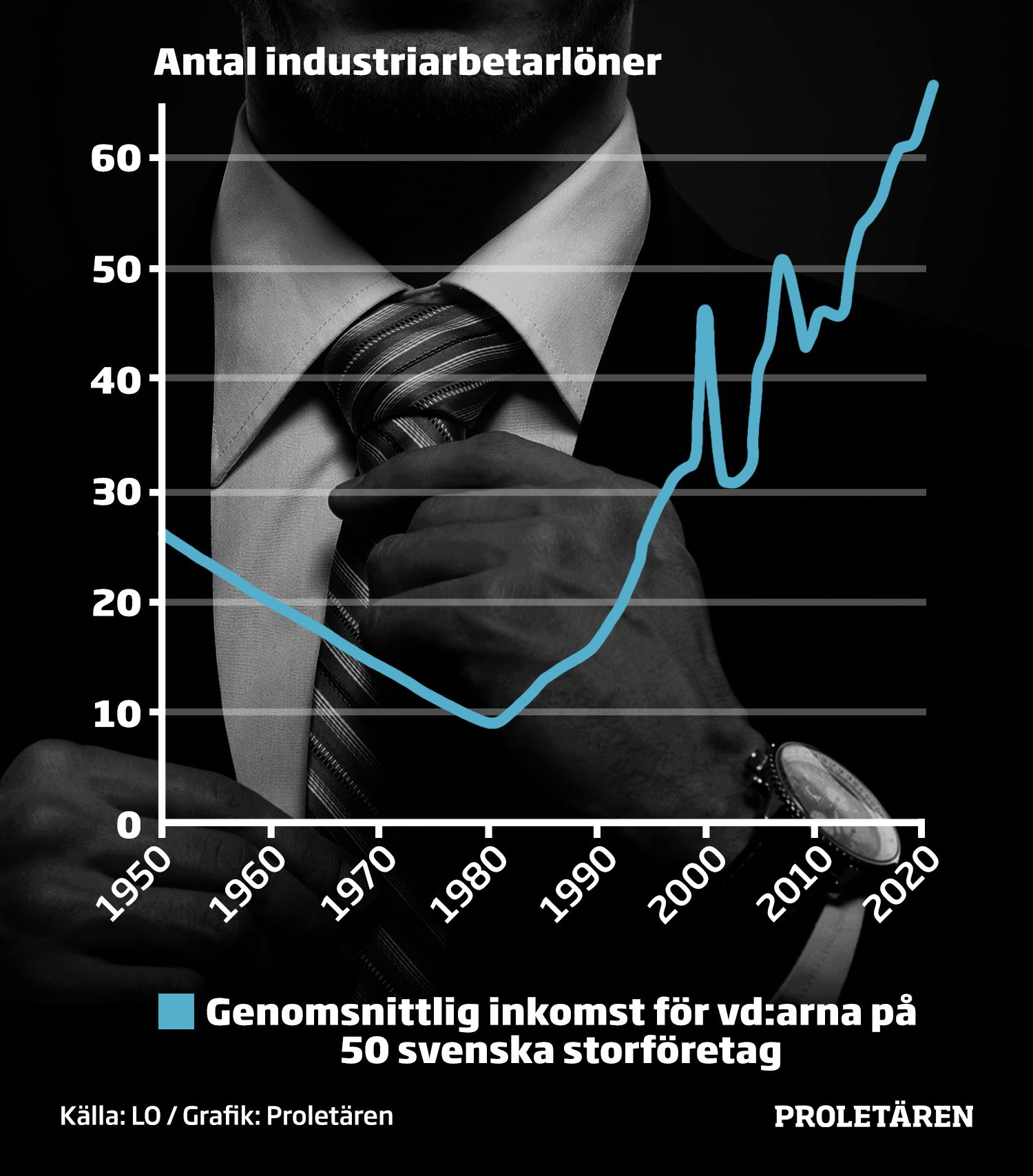 Rapporten visar på en kraftig ökning av framför allt den ekonomiska elitens inkomster, vilken omfattar 50 verkställande direktörer på svenska storföretag. Den genomsnittliga inkomsten för en vd på ett svenskt storföretag motsvarar nu nästan 65 industriarbetarlöner, vilket är kraftig ökning bara från 2019 då siffran var 60 industriarbetarlöner. 1980 motsvarade en vd-lön 4,5 industriarbetarlöner.