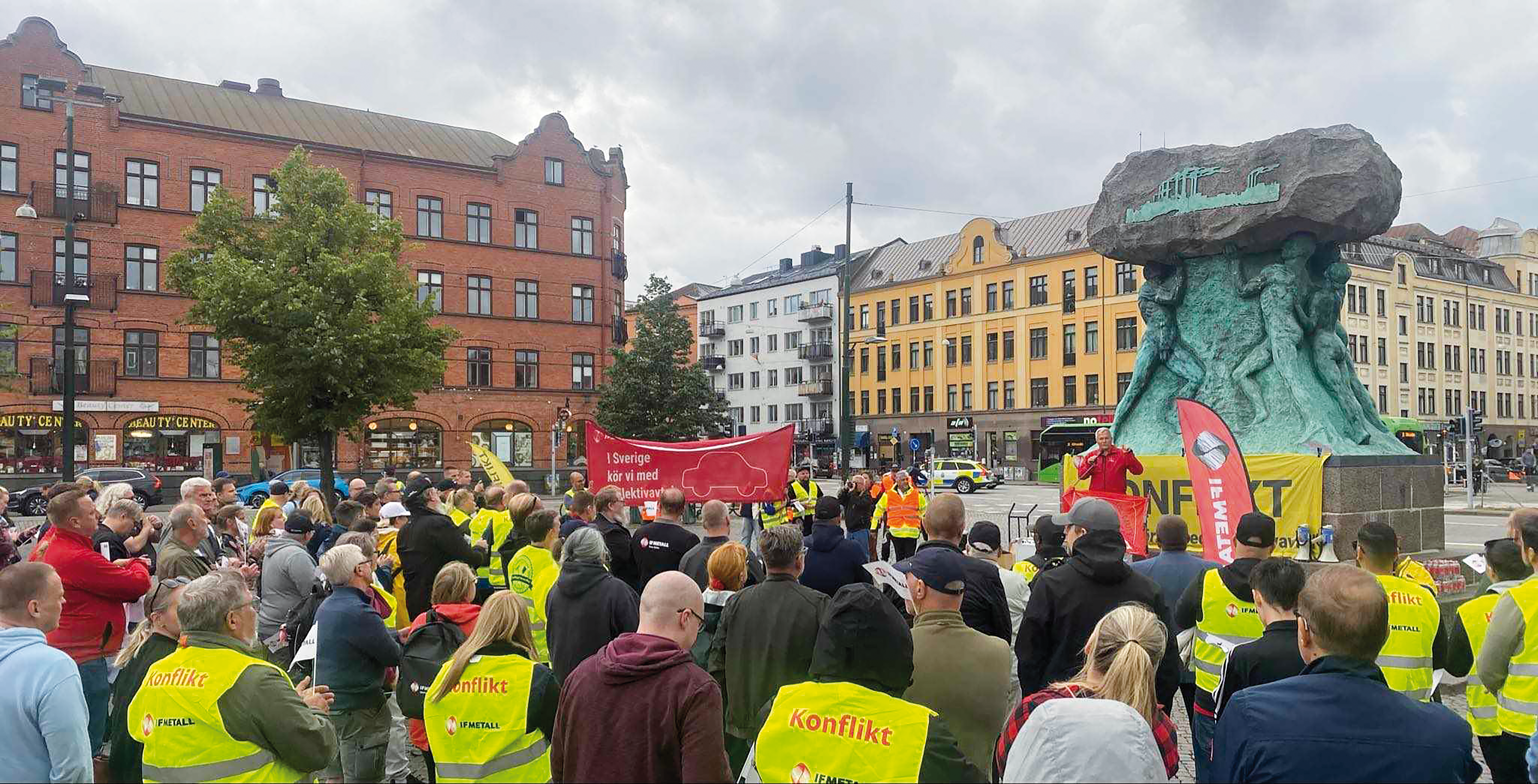 IF Metall avdelning 41 i sydöstra Skåne anordnade tisdag förra veckan en manifestation i Malmö till stöd för de strejkande arbetarna på Tesla. På plats fanns också medlemmar från IF Metalls tyska motsvarighet IG Metall.