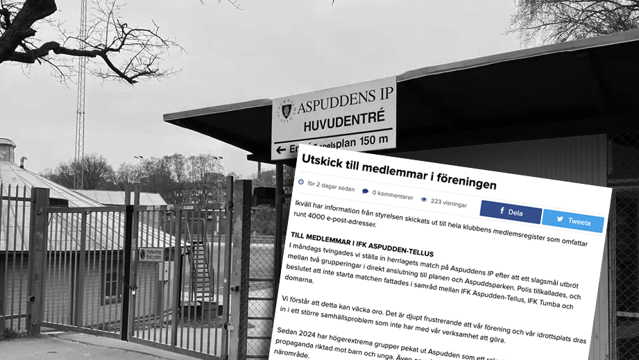 Fotbollsklubben IFK Aspudden-Tellus har kapats av aktiva nazister som i sociala medier och via så kallade klibbor för ut sitt budskap –- delvis i klubbens namn. Nu möter nazisterna motstånd av nybildade gruppen Aspuddens föräldrar mot nazister som manar till uppslutning i samband med nästa hemmamatch, mot Stuvsta IF den 2 maj. ”Den senaste tiden…