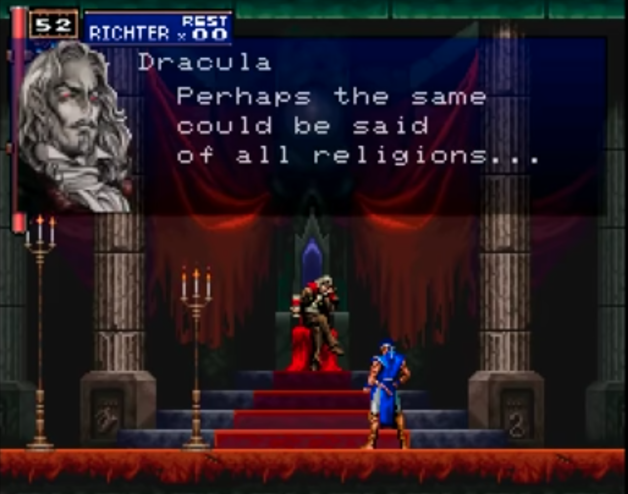 Du spelar som Alucard, Draculas grabb. När farsan dyker upp ur intet och hotar att spänna evigt mörker över mänskligheten är det upp till dig att stoppa honom. Utforska slottet Castlevania och spöa allt i din väg.