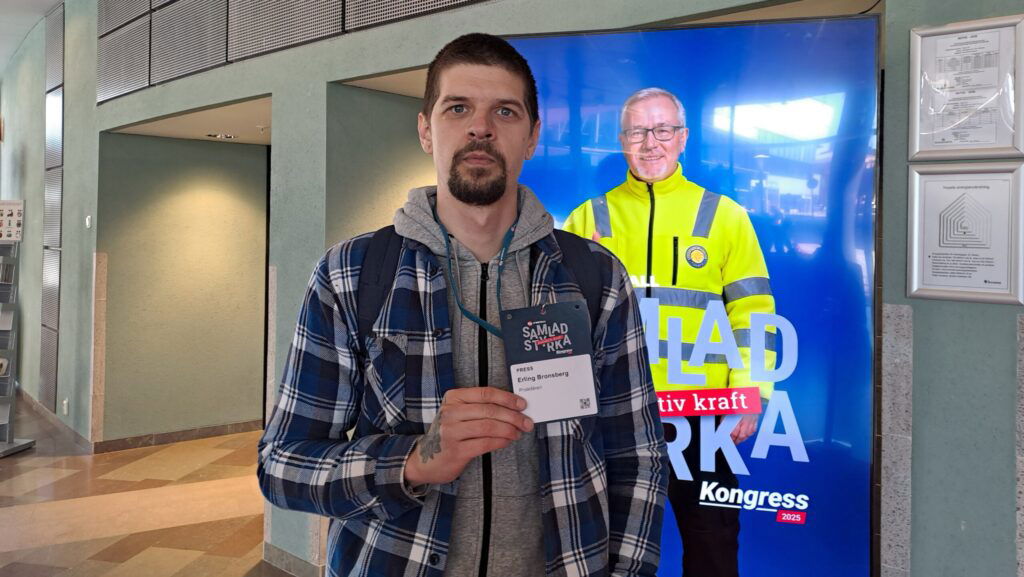 Proletärens reporter Erling Bronsberg på plats på IF Metalls kongress. Fotograf: Proletären