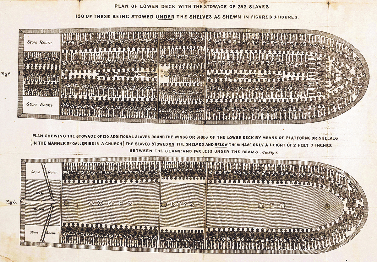 Å ena sidan själva människojakten i Afrika där slavarna togs, å andra sidan européernas kommersiella intresse och vinstbegär.