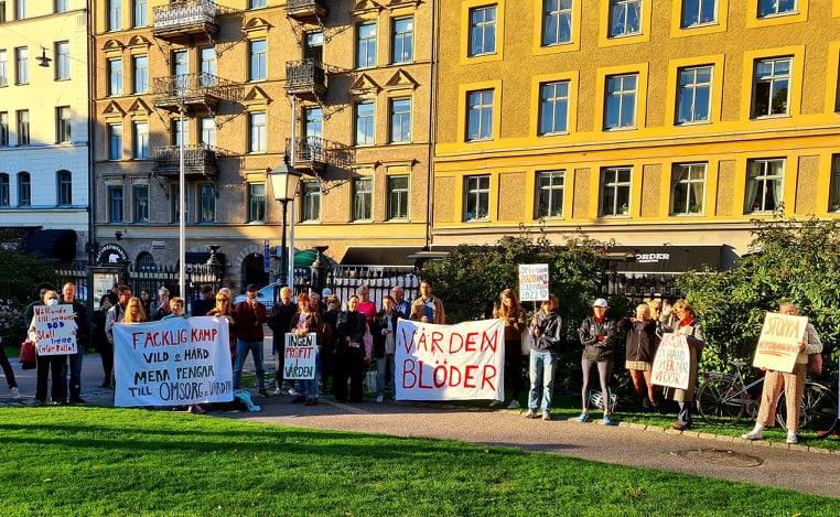 Vårdpersonal protesterar mot regionens sparkrav