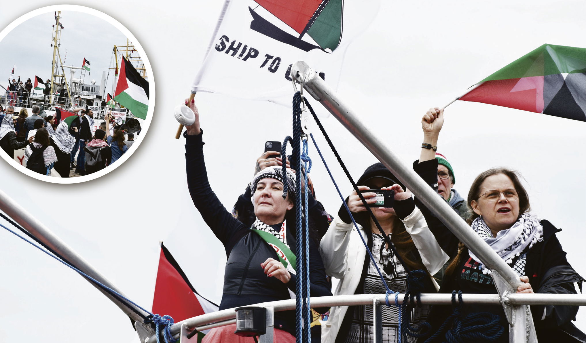 Proletären var först med att hälsa Ship to Gazas ordförande Jeannette Escanilla välkommen i land när båten Handala anlände till Göteborg…