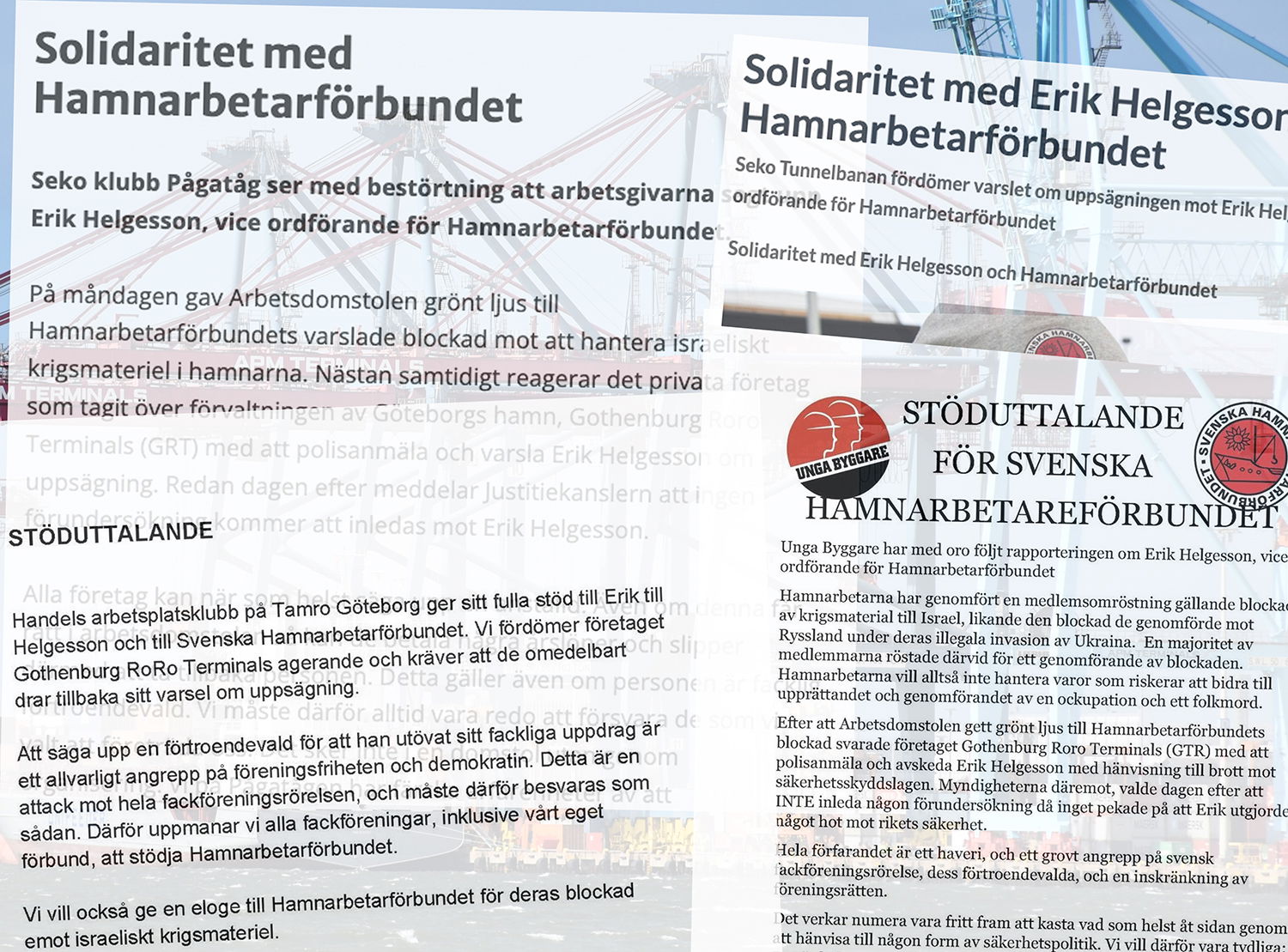 Ett antal fackklubbar inom LO skickade ut stödmeddelanden till Erik Helgeson och Hamnarbetarförbundet förra veckan. Men inget förbund eller någon…