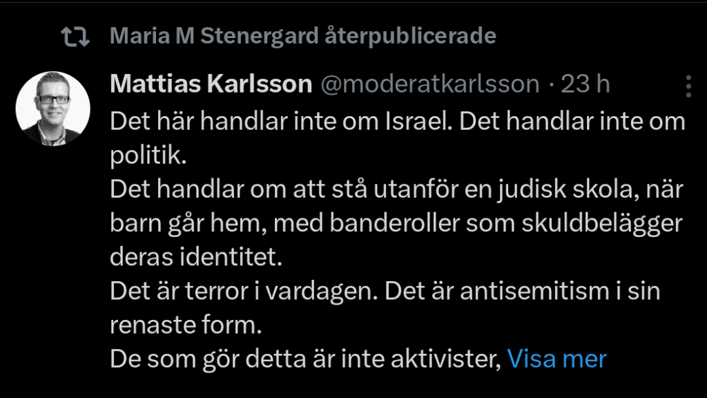 Tidöregeringens företrädare drar sig inte för att smutskasta Palestinarörelsen med rena lögner. Så har utrikesminister Maria Malmer Stenergard delat vidare…