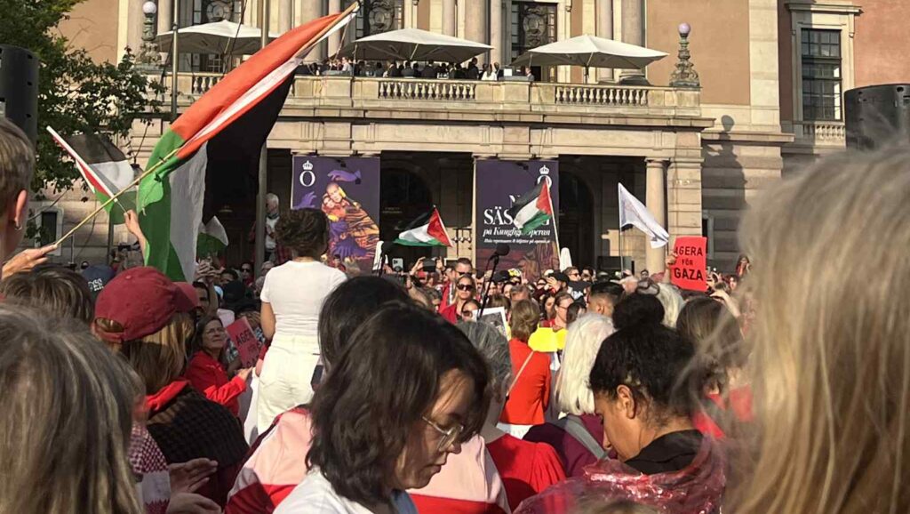 I tisdags förra veckan samlades återigen tusentals personer i Stockholm för Palestina, den här gången för demonstrationen “Vi drar den röda linjen – agera nu”. Bland arrangörerna fanns bland andra Kommunal, IF Metall, LO, Unga örnar, Act Svenska Kyrkan, Svenska freds och Amnesty. På demonstrationen deltog också aktivister från Kommunistiska Partiet och RKU. Nellie Stendin…