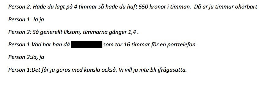 På inspelningen hörs hur två högt uppsatta Bravida-chefer uppmuntrar en serviceledare till att fuska med tidredovisningen för att bolaget ska kunna tillskansa sig mer pengar, utöver de miljoner som avtalen redan är värda.