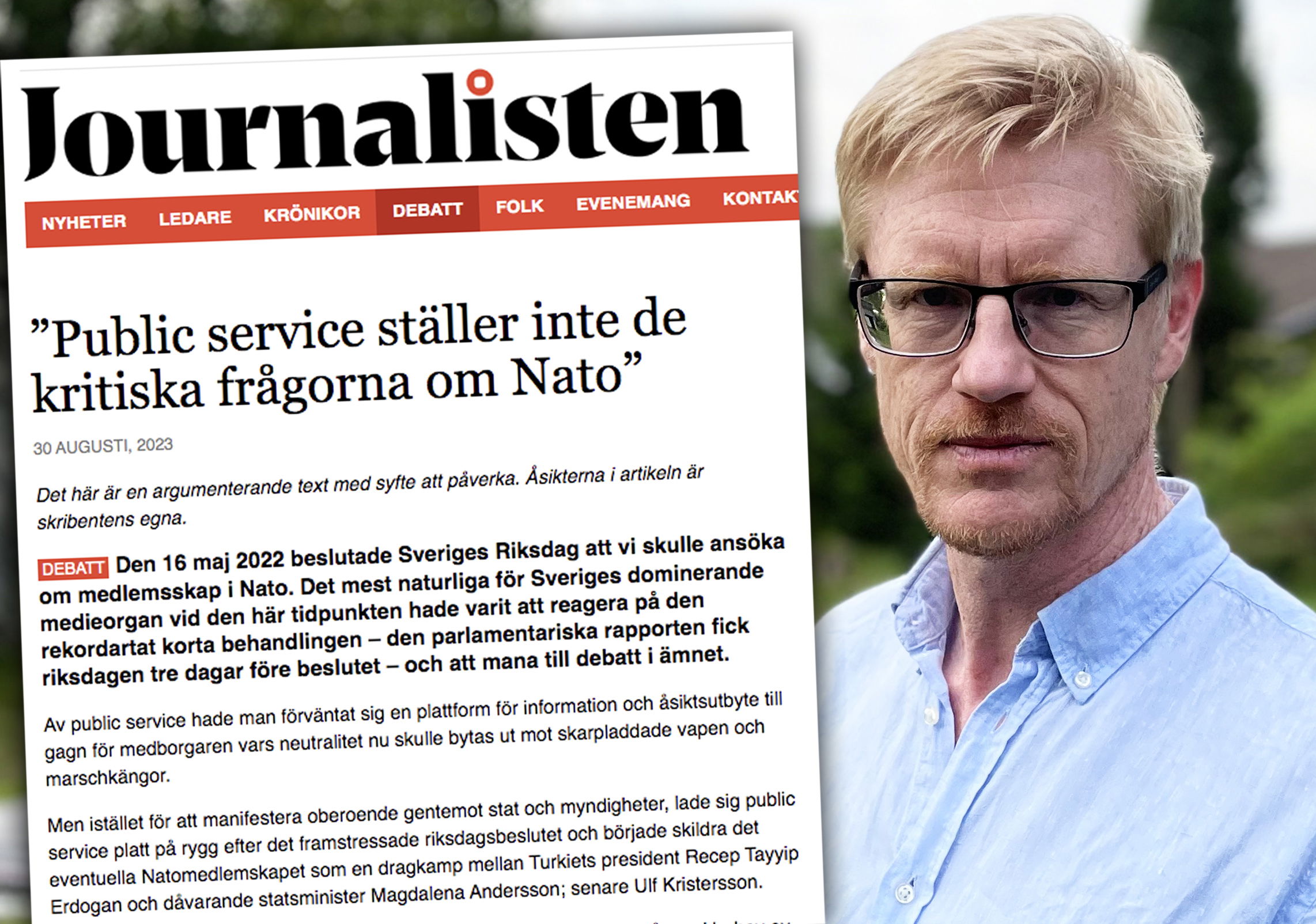 – Jag läste en kommentar som beskrev svensk public services bevakning av Natofrågan som ett haveri. Men haveri är något som påbörjats och kantrat. Jag tycker inte ens att deras bevakning av frågan har börjat. Man har hela tiden underlåtit att ställa de kritiska frågorna.