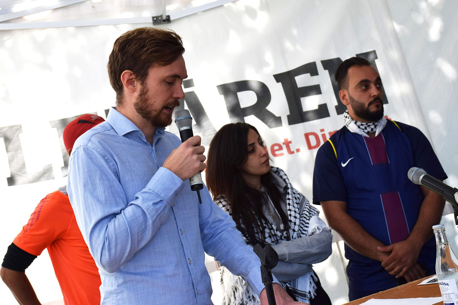 – I tältet blir det också tillfälle för besökare att skicka sin egen solidaritetshälsning till Kuba och Palestina, genom Proletärens kamera, berättar August Eliasson.