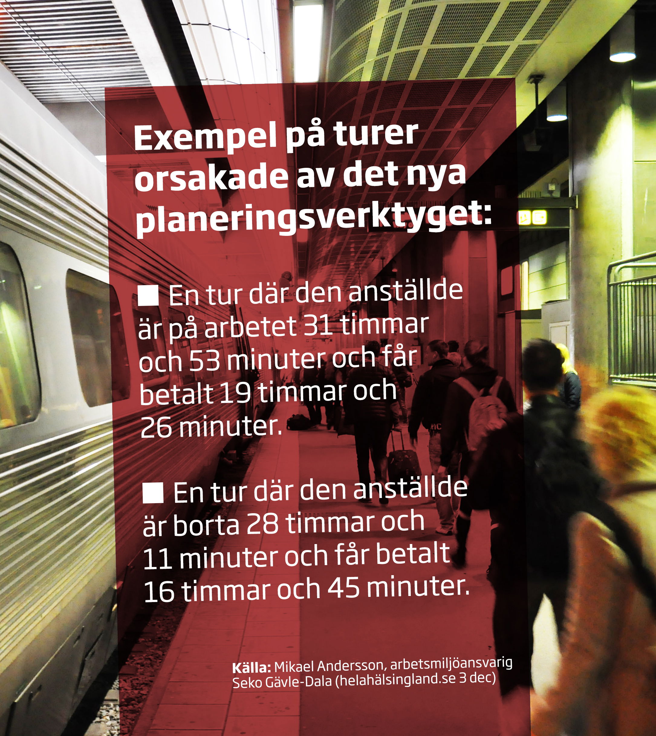 – Det har blivit som ett skämt bland oss anställda. Varför har jag en tur som är elva timmar och så åker jag runt som resenär halva dagen utan att göra något vettigt?