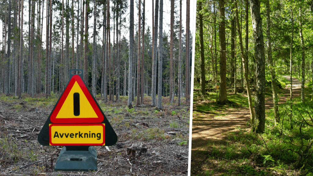 Trots att skogsbruket har stor skuld till den minskade biologiska mångfalde vill utredaren att artskyddet ska försämras och att det ska bli lättare att upphäva naturreservat. Fotograf: Hyltebruksskylt/ Ivo Kruusamägi/ W.carter|Montage: Proletären