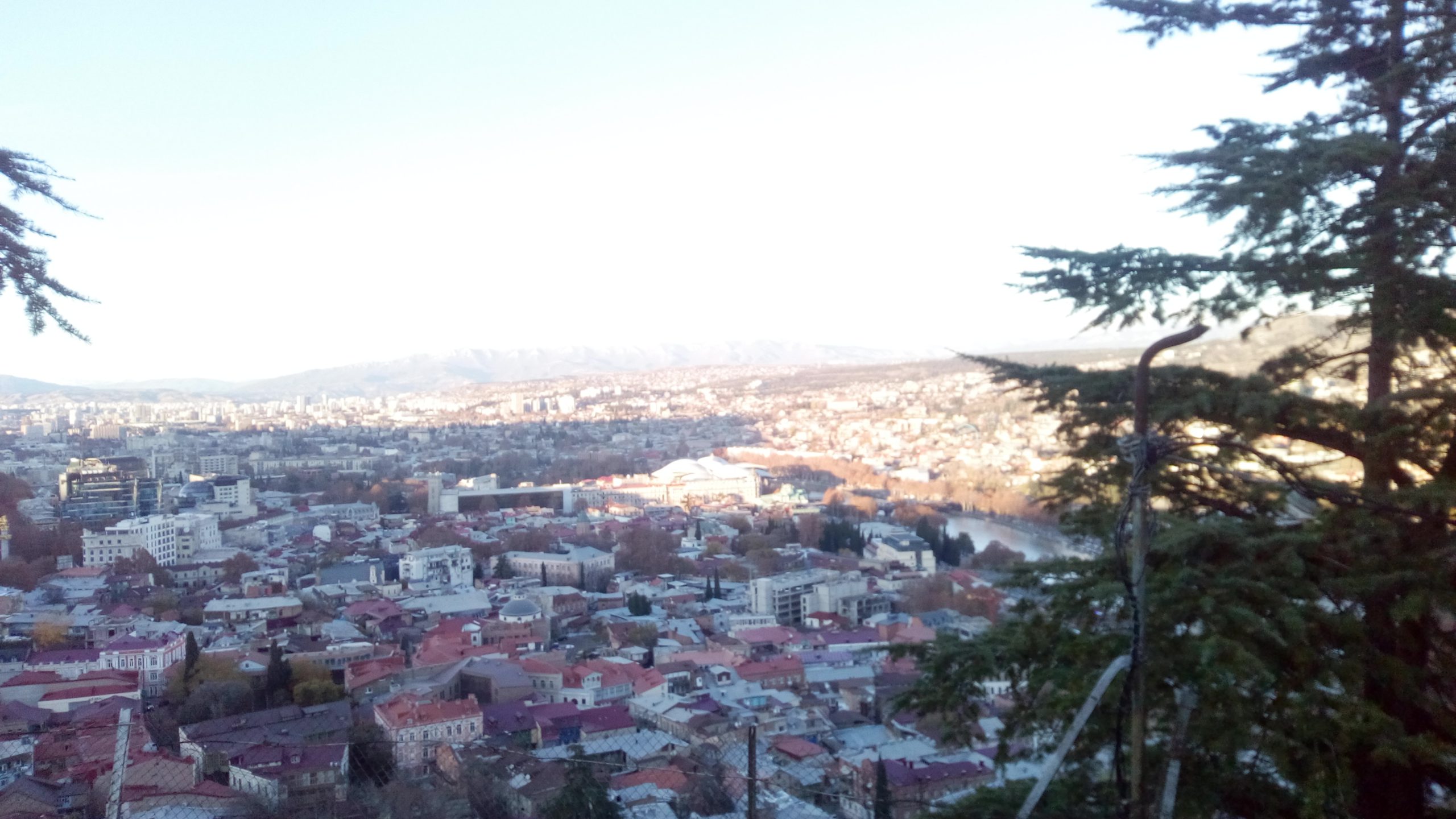 På dagen är Tbilisi en lugn stad där turister ses överallt. Rysktalande turister finns i mängder. Georgiska är landets språk men många har ryska som modersmål och det ryska språket är också vanligt i vardagen. När vi åkte turistbuss runt staden var nästan alla hörlurar med förinspelad information redan inställda på ryska. Går man in på café eller restaurang kan man prata ryska med personalen, som svarar på flytande ryska.